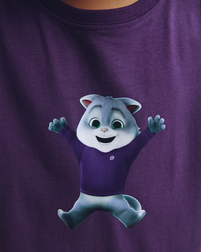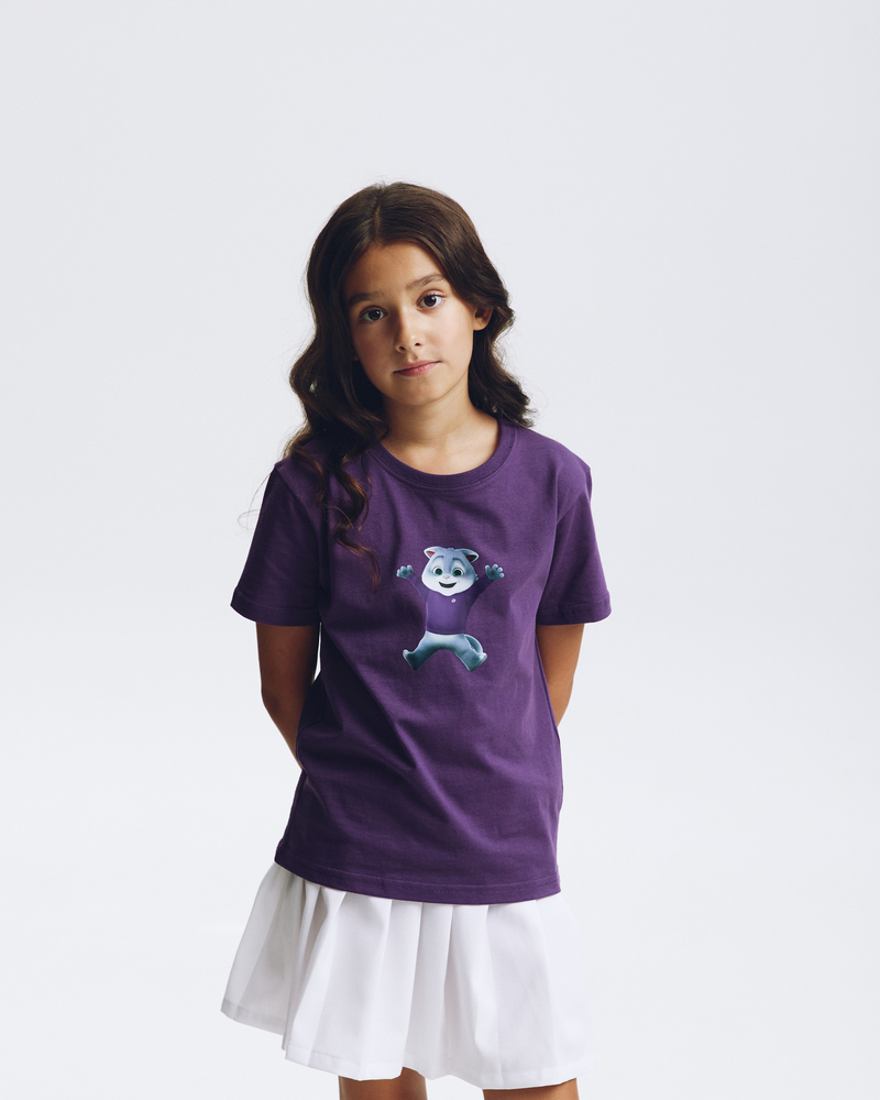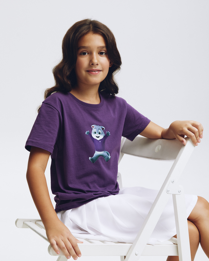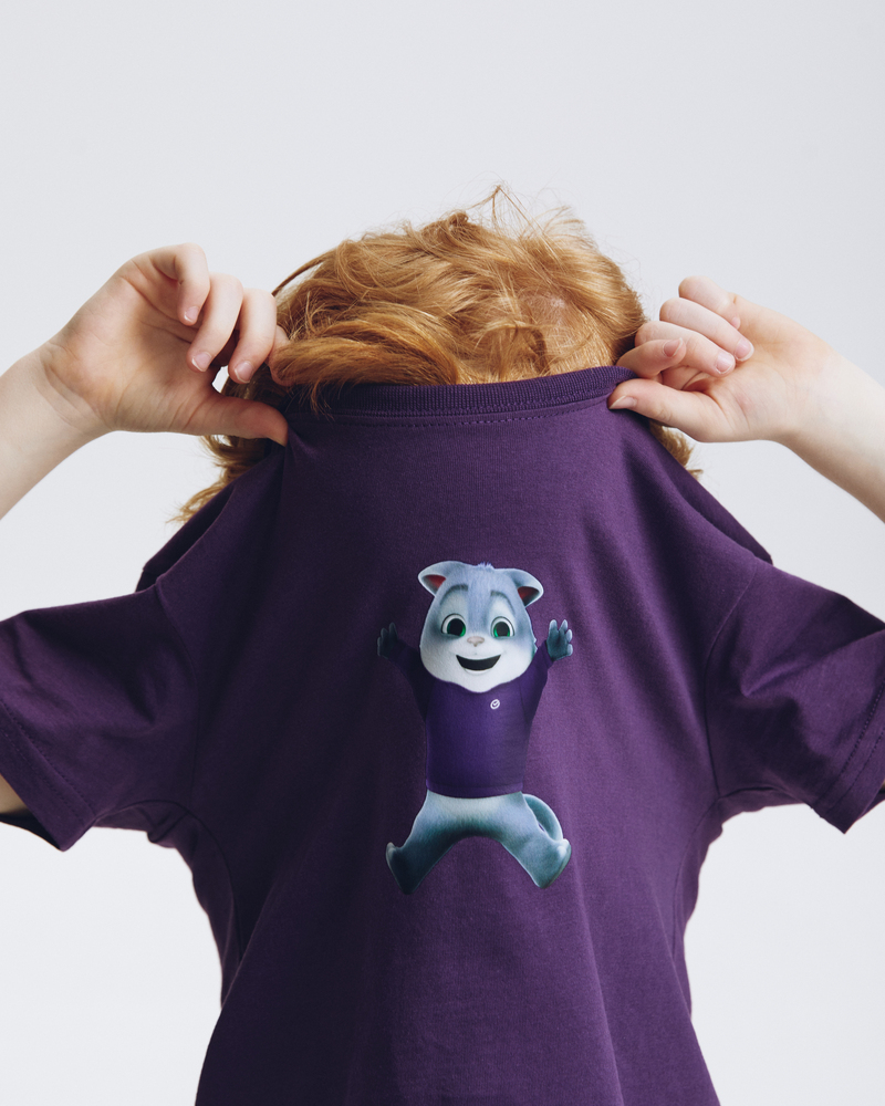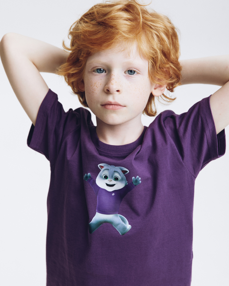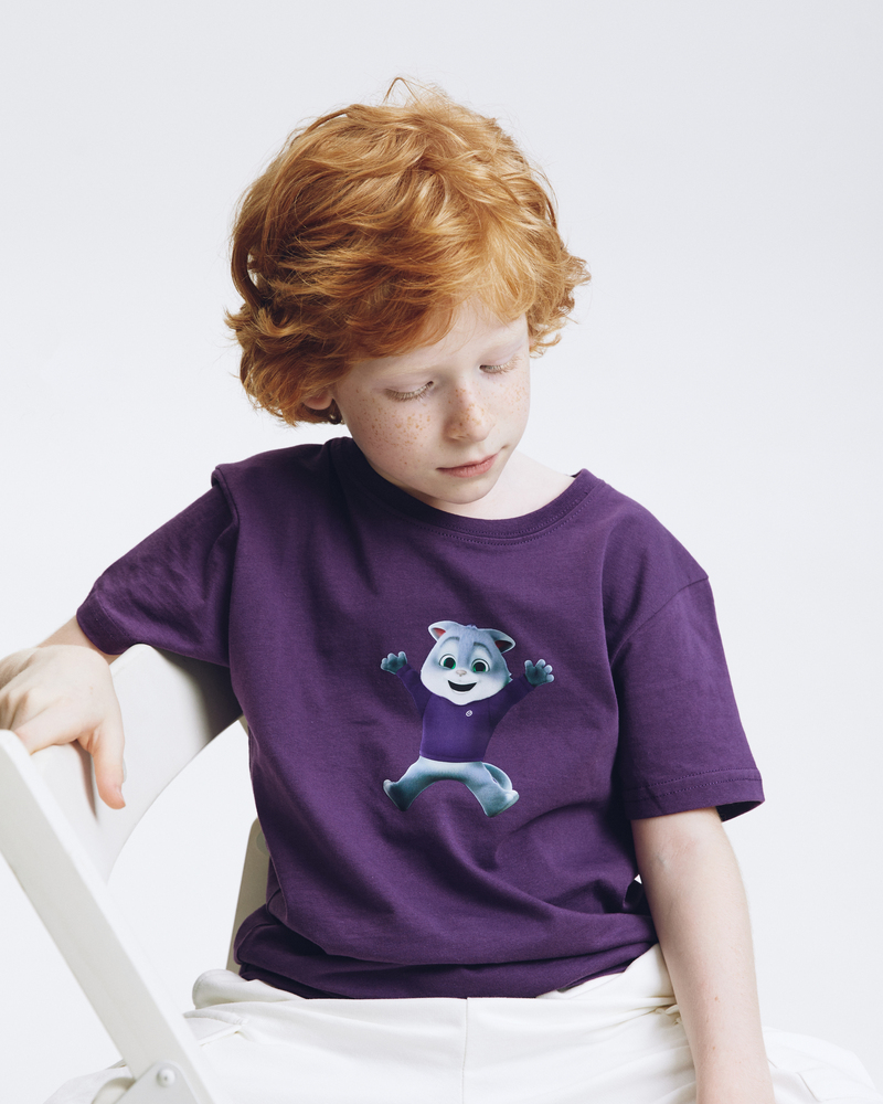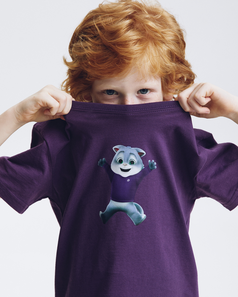 Почувствуйте себя в объятиях комфорта и тепла с детской футболкой "Сберкот Счастлив"! Сочный сливовый цвет и мягкий 100% хлопок создают ощущение уюта, а милый Сберкот, излучающий счастье, подарит хорошее настроение на весь день.
