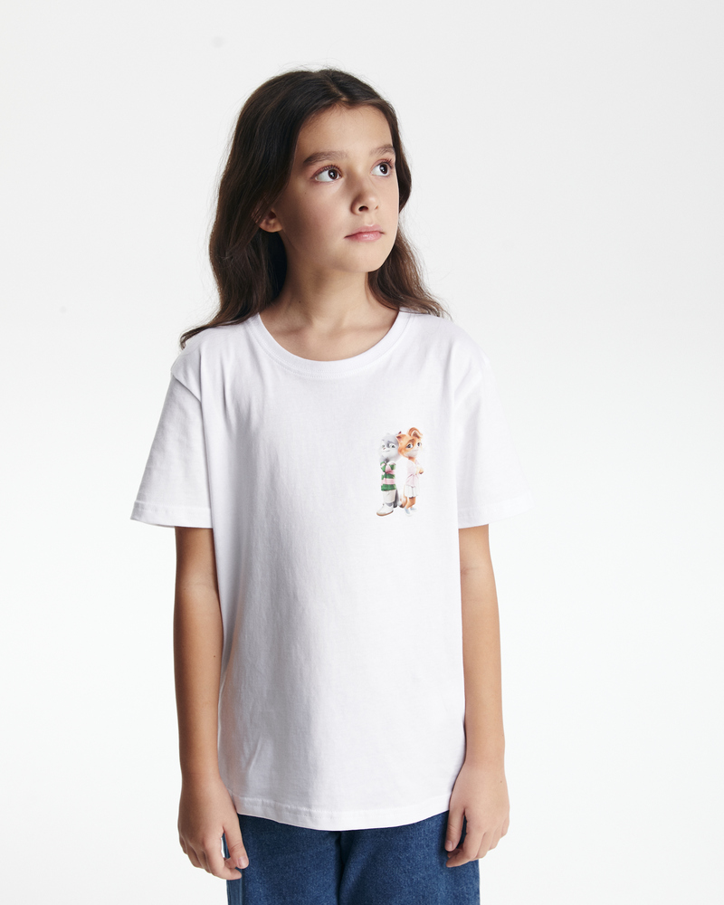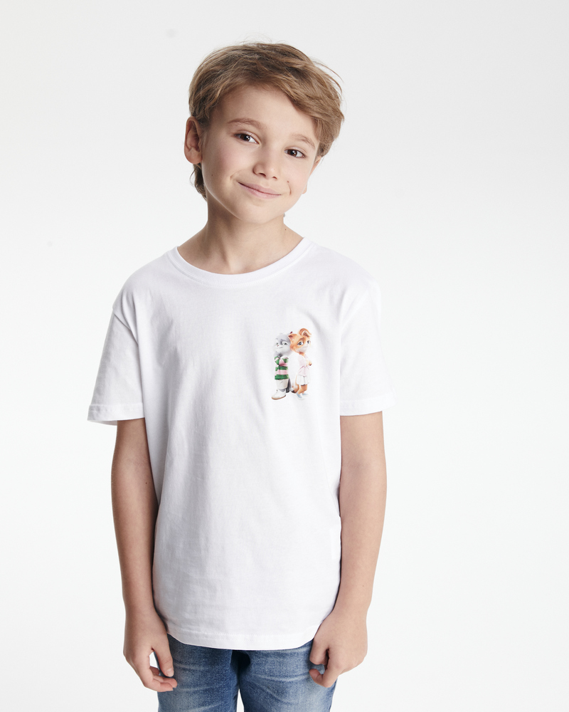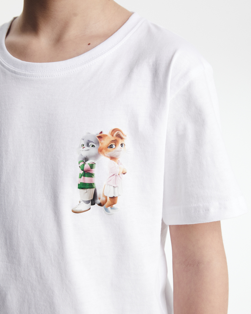 Футболка детская СберКот и Куся белая — купить за 1 300 ₽ — Детская одежда — SberShop