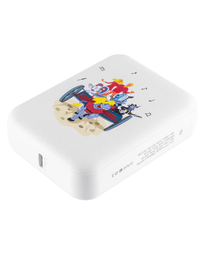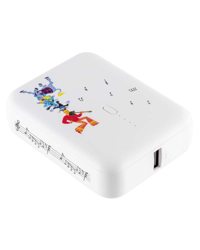 Внешний аккумулятор изготовлен в белом цвете и украшен ярким принтом с персонажами мультфильма «Бременские музыканты» — он станет вашим надёжным помощником в повседневных делах, а также послужит полезным подарком для друзей и близких.