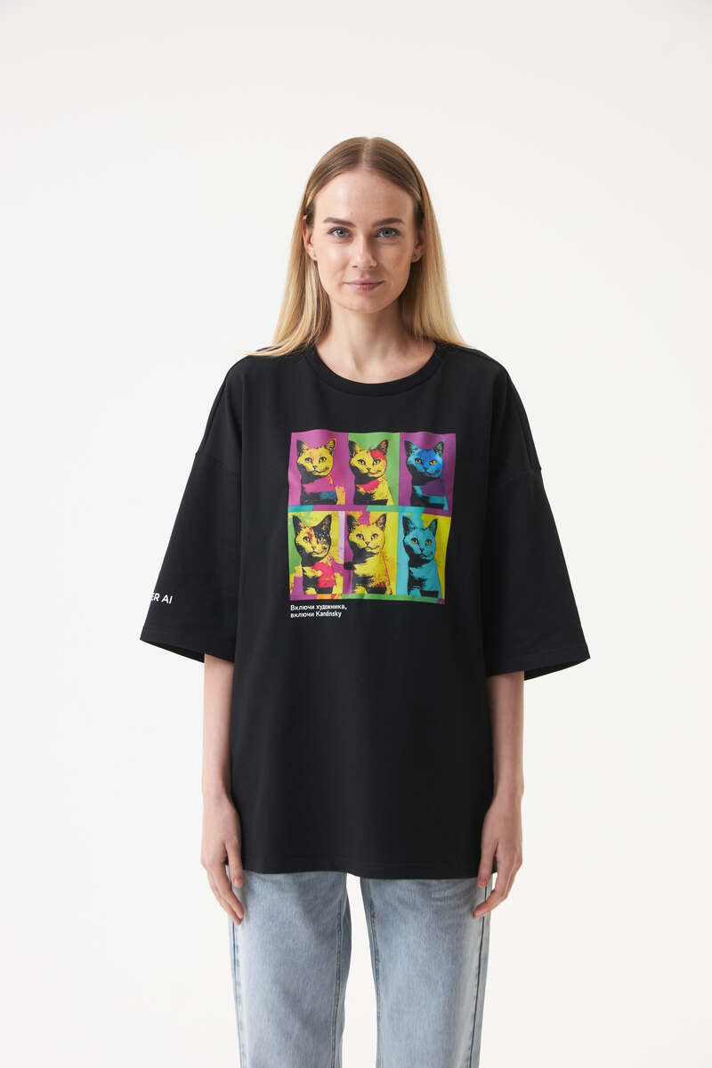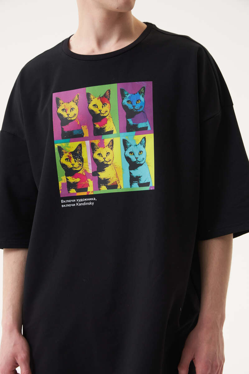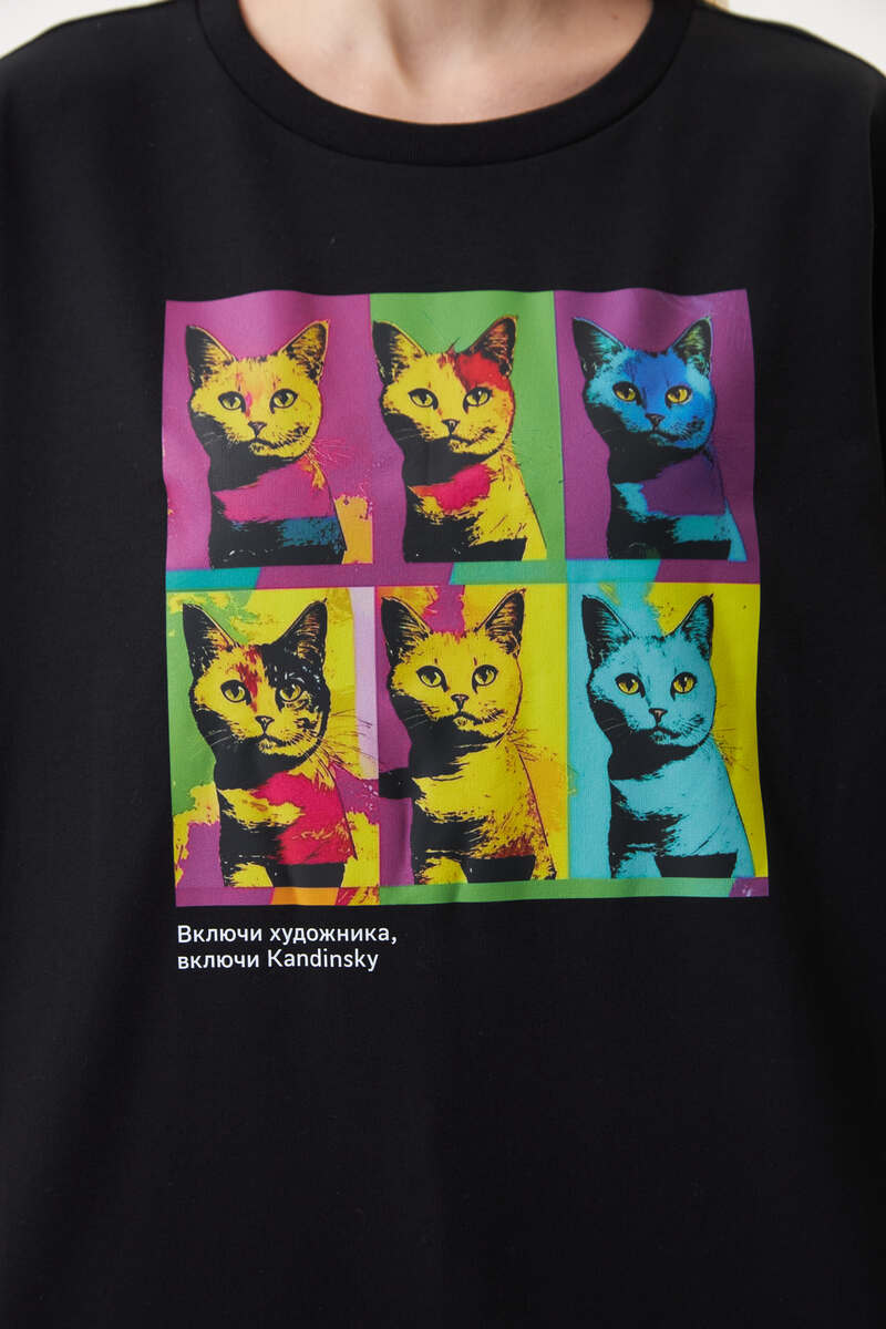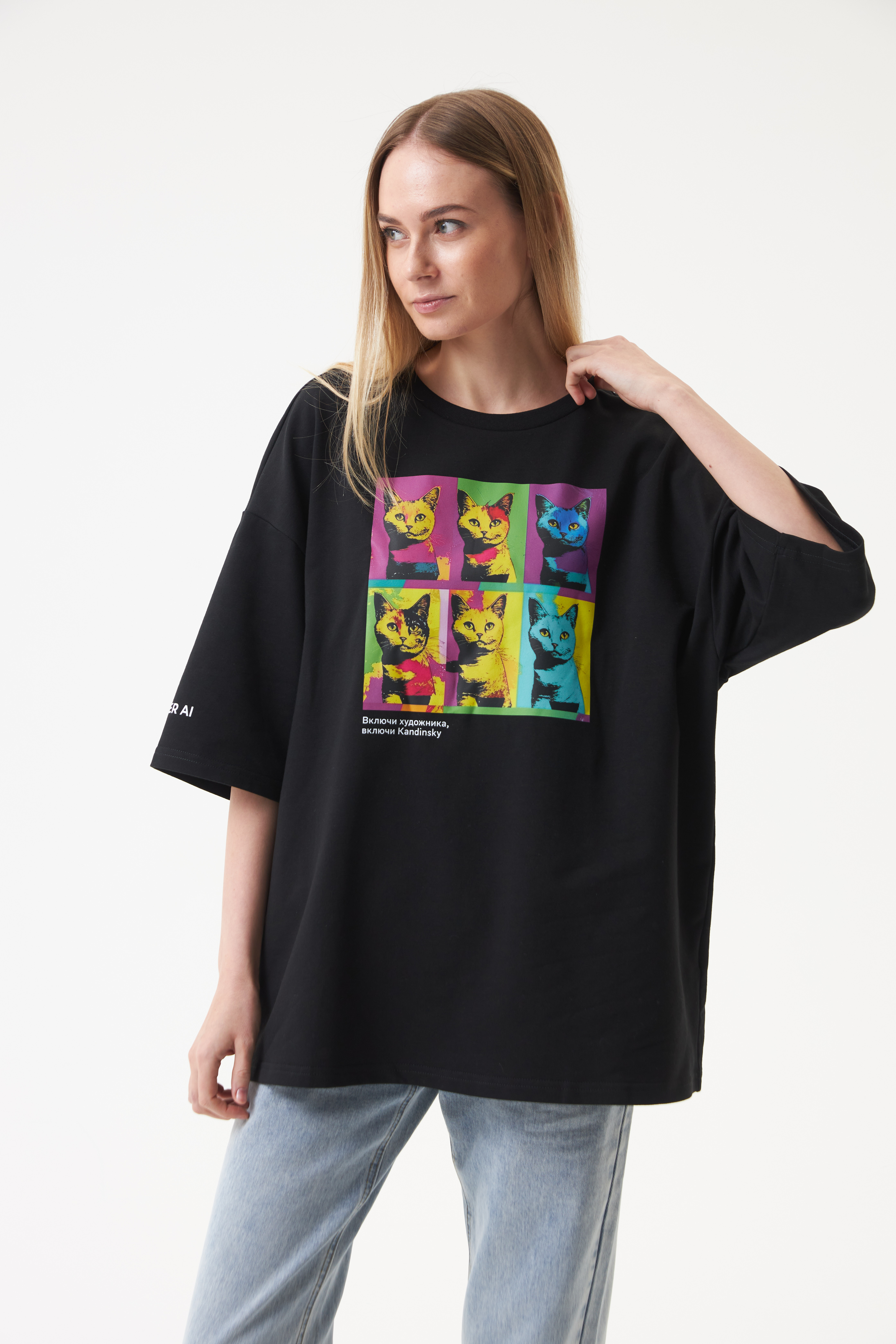 Эта черная футболка оверсайз с милым принтом из шести очаровательных котиков станет отличным дополнением вашего гардероба! Сочетание комфортного кроя, приятного к телу материала и забавного дизайна гарантирует, что вы будете чувствовать себя уверенно и стильно в любой ситуации.