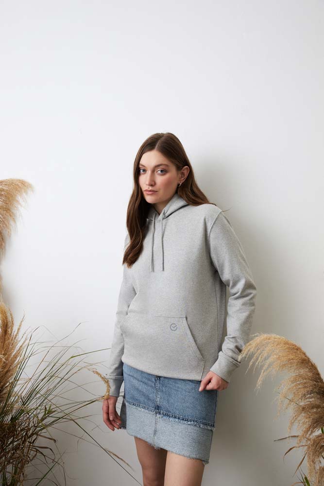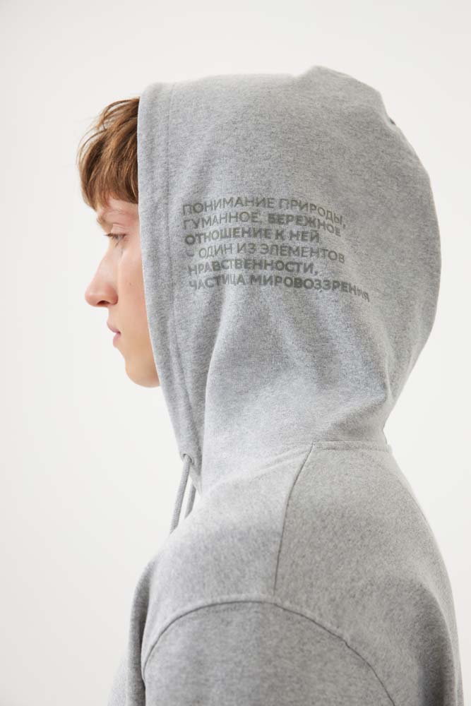 Худи из новой коллекции ESG на 50% состоит из переработанного хлопка и на 50% из органического.