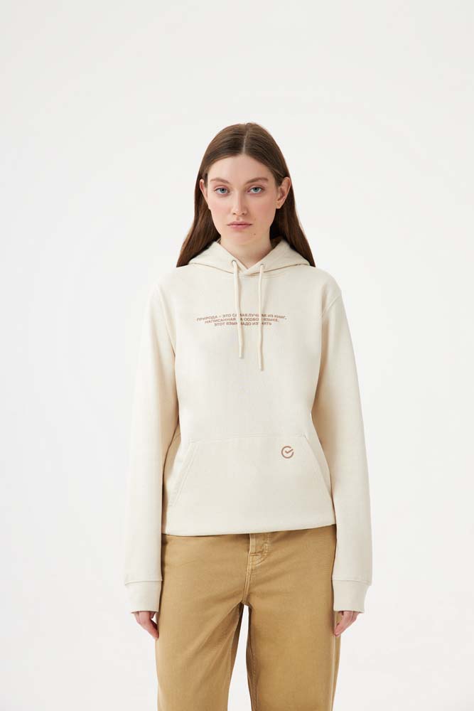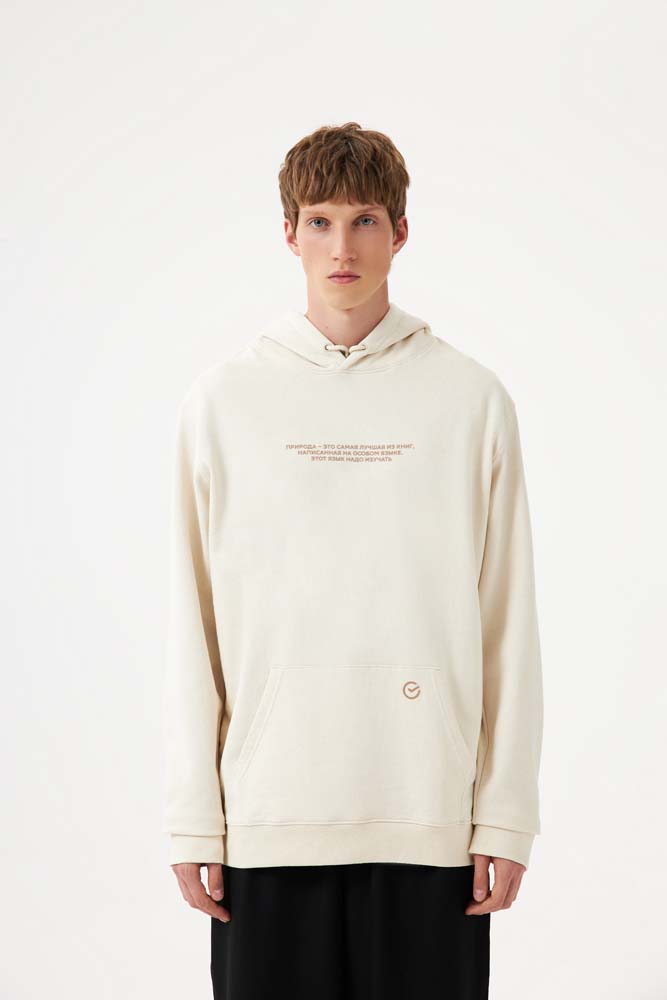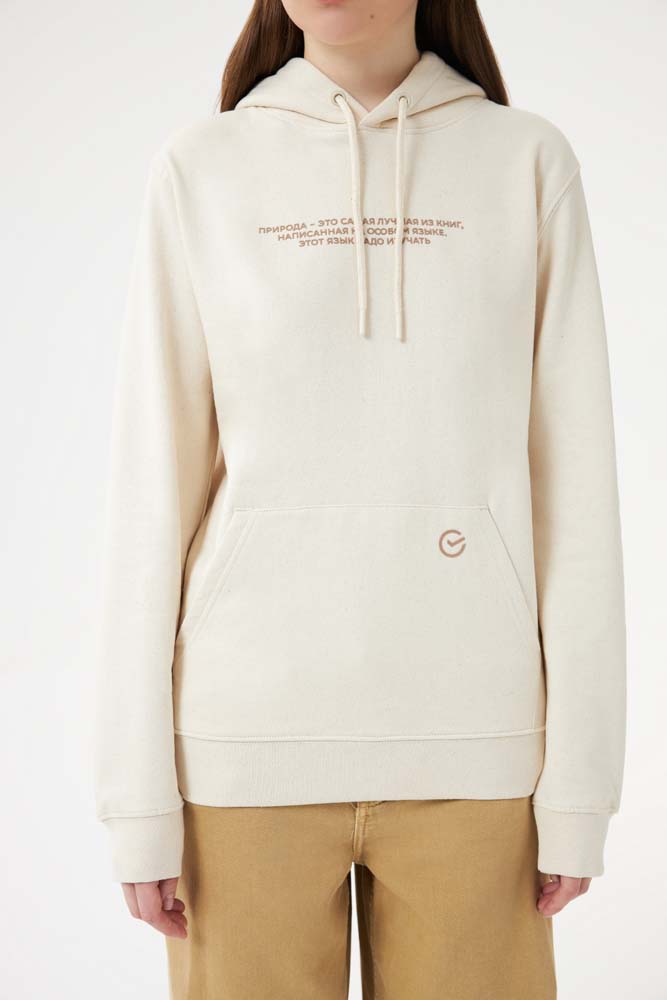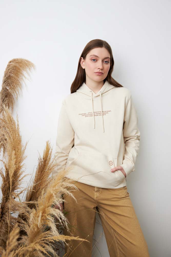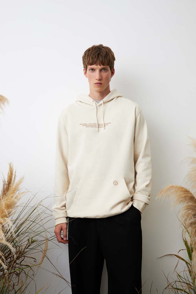 Худи из новой коллекции ESG на 50% состоит из переработанного хлопка и на 50% из органического.
