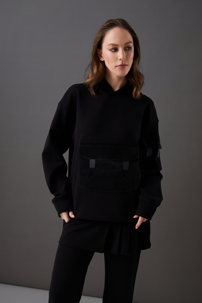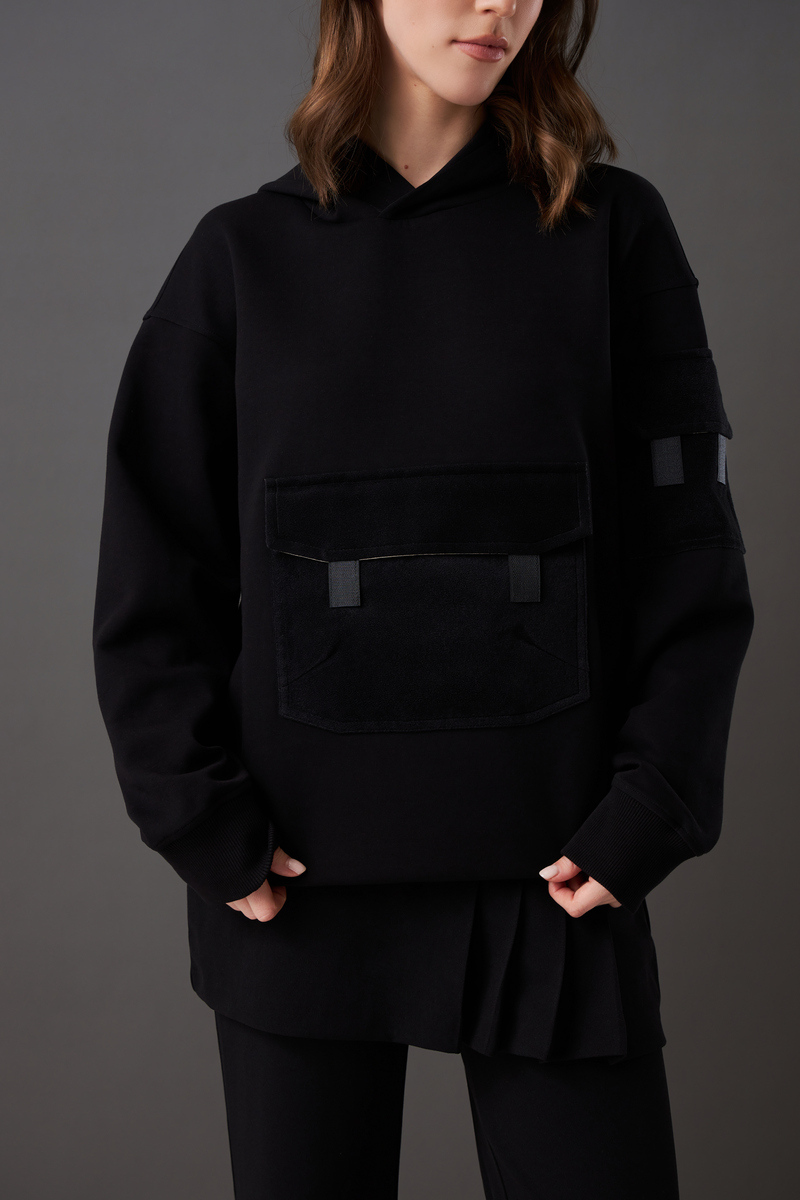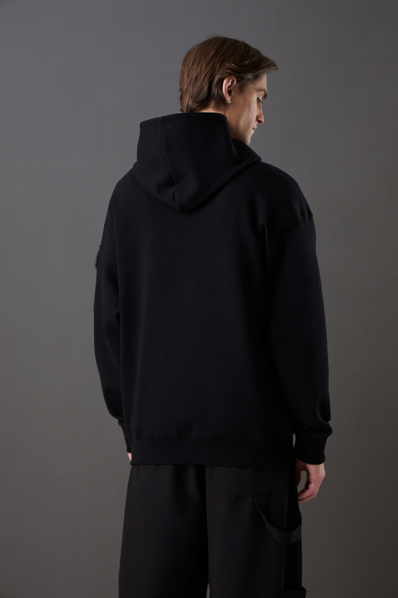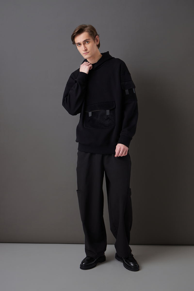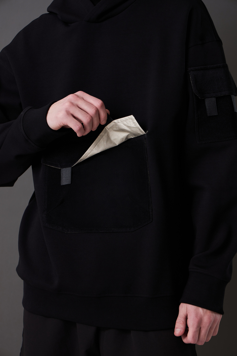 Худи полуоверсайз с карманом с RFID защитой СБЕР Х РОСКОСМОС – комфорт, стиль и защита в современном исполнении. Это черное худи, созданное в коллаборации СБЕР и РОСКОСМОС, сочетает в себе удобный крой, технологичные материалы и надежную защиту данных. Идеальный выбор для тех, кто ценит комфорт и безопасность в повседневной жизни.