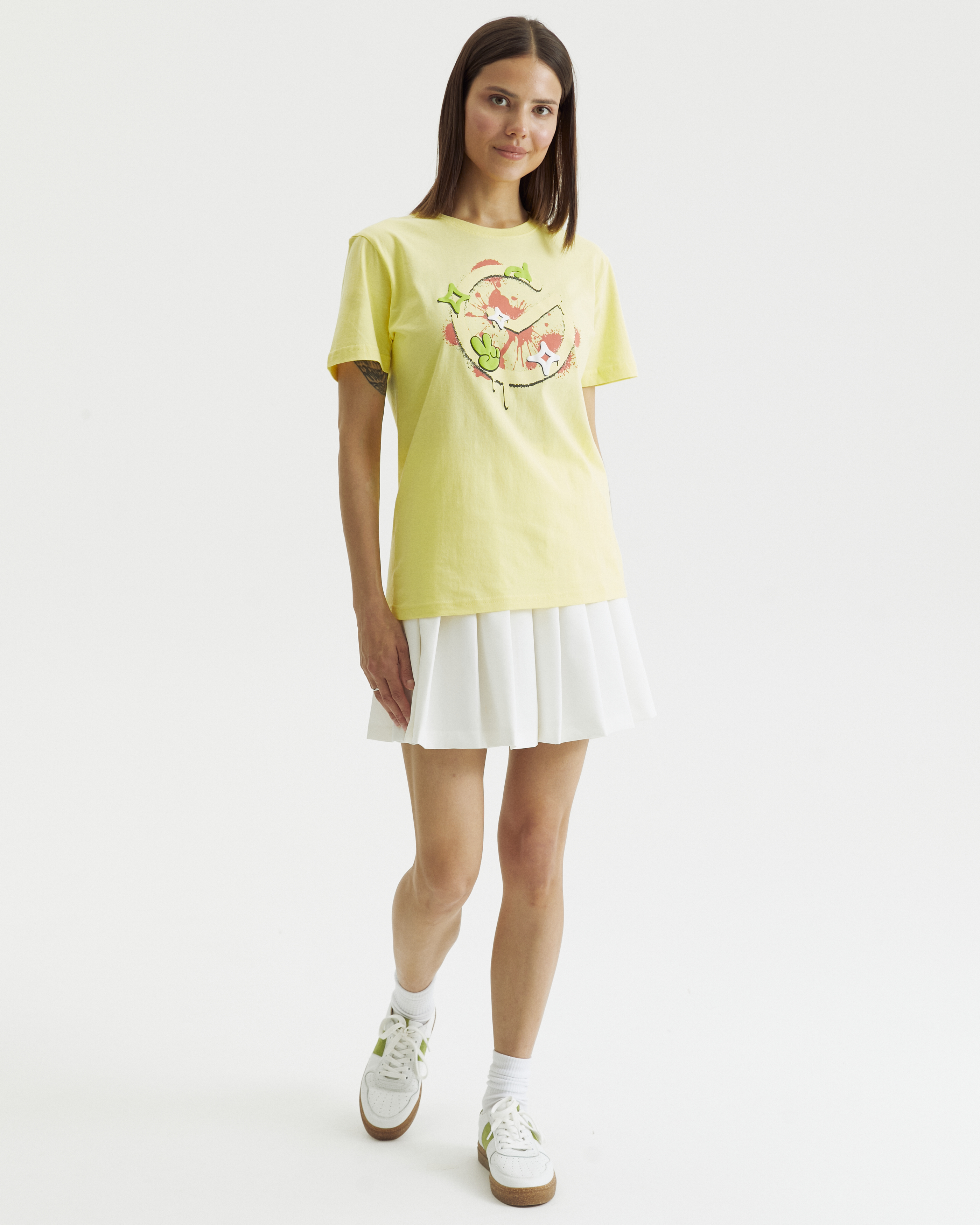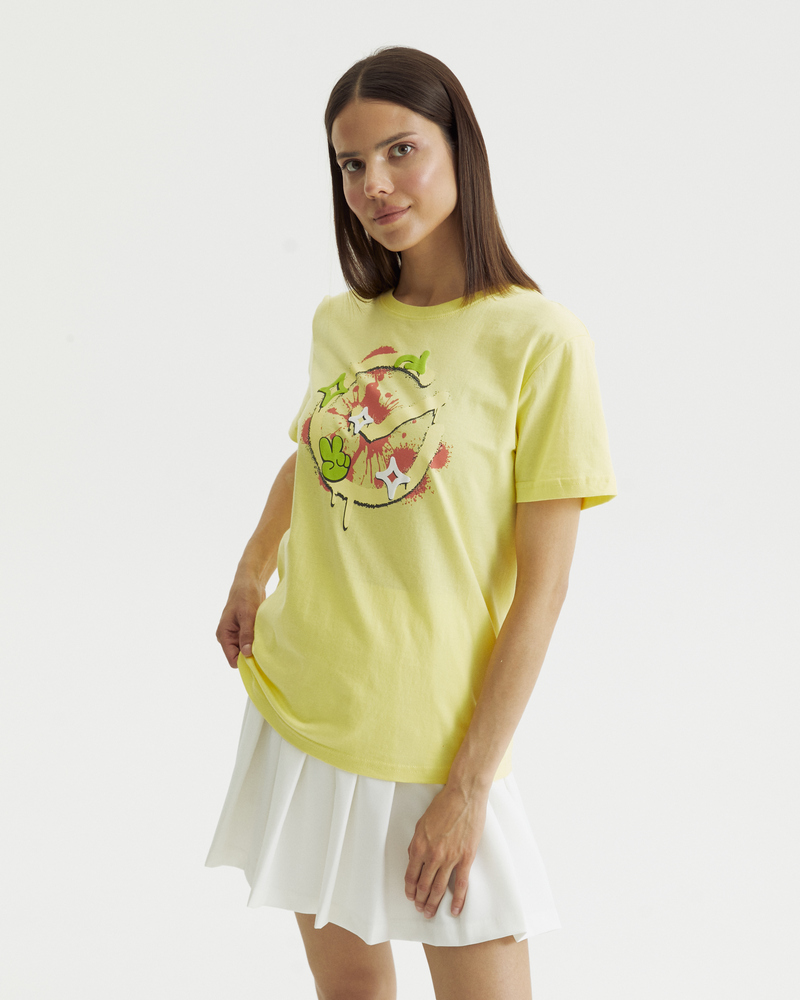Футболка классического кроя из новой коллекции «Граффити» сшита из 100% хлопка, украшена концептуальным принтом и представлена в нескольких цветовых решениях. Благодаря модели унисекс эта футболка подойдёт как мужчинам, так и женщинам – она впишется в любой гардероб, дополнит ярким акцентом множество ваших образов и вдохновит на новые.