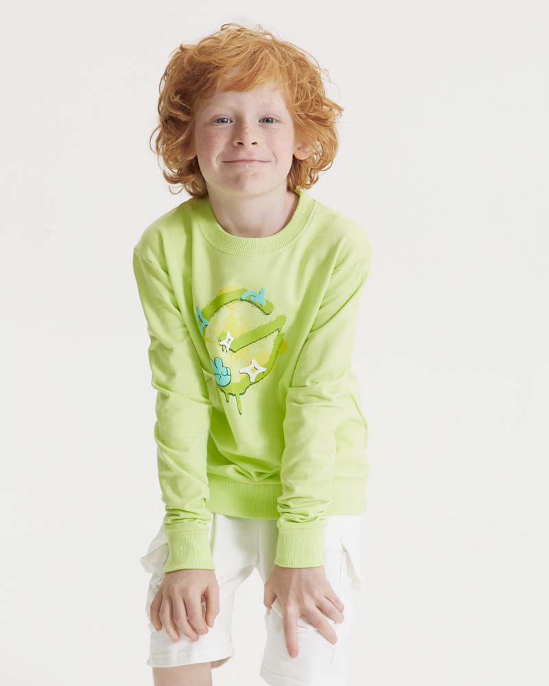 Свитшот детский СБЕР Граффити – идеальное сочетание комфорта, качества и яркого стиля! Изготовлен из 100% хлопка (260 г/м²), мягкого и приятного к телу ребёнка. Футер без начёса обеспечивает оптимальный теплообмен и комфорт в любое время года. Оригинальный принт в стиле граффити, выполненный методом шелкографии (230 x 250 мм), обязательно понравится маленькому бунтарю и выделит его из толпы.