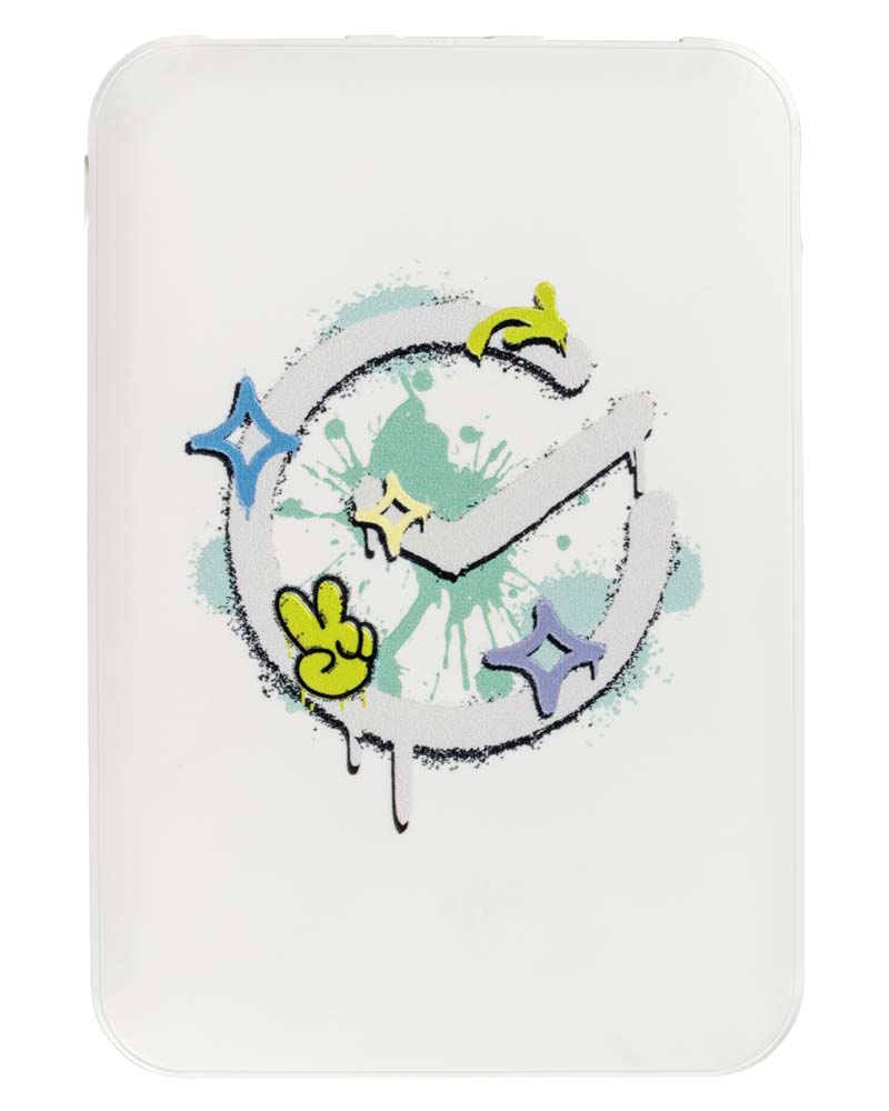 Внешний аккумулятор Elari обладает ёмкостью 5000 мАч – этого хватит на несколько полных зарядов для вашего смартфона, а 4 белых световых индикатора сообщат об уровне заряда аккумулятора. Elari имеет 2 USB-выхода – теперь можно заряжать несколько устройств одновременно. Внешний аккумулятор украшен оригинальным принтом, а его корпус выполнен из прочного пластика с покрытием soft-touch, что делает его приятным на ощупь.