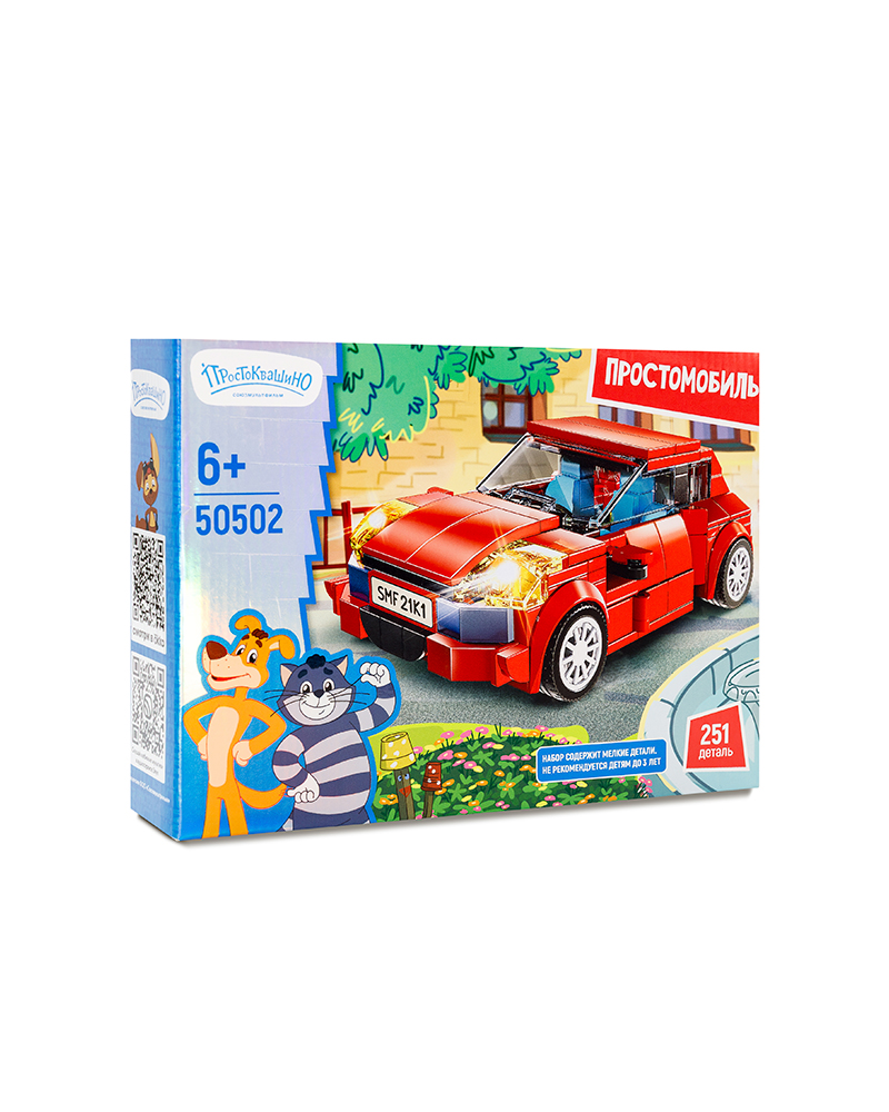 Конструктор «Простомобиль» — это увлекательная игра, созданная для поклонников знаменитого мультсериала «Простоквашино». В набор входят 251 деталь, что позволяет собрать оригинальный Простомобиль и разыграть любимые сцены с героями. В комплекте присутствуют фигурки главных персонажей сериала: Матроскина, Шарика, Дяди Фёдора. Благодаря фигуркам можно воспроизводить приключения из «Простоквашино» или придумывать новые истории.
