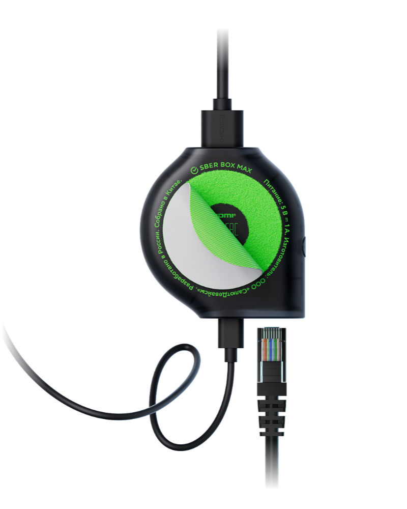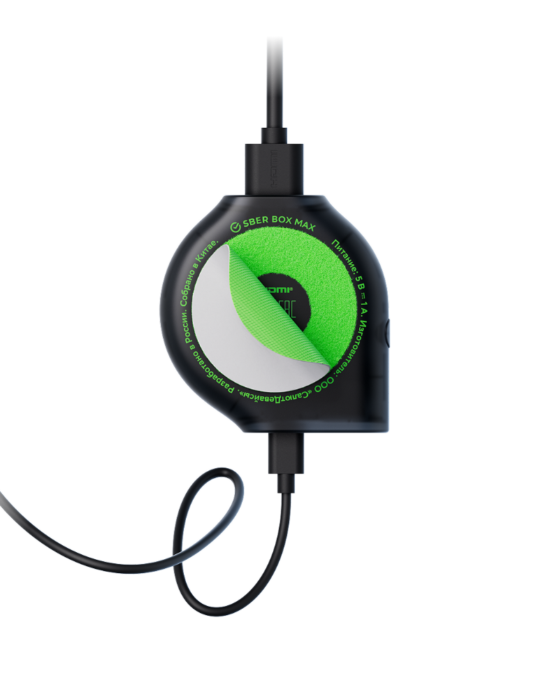 Комплектация: медиацентр SberBox Max; Bluetooth-пульт с микрофоном; две батарейки АА; адаптер питания; USB-кабель; HDMI-кабель; UV-липучка для крепления бокса на поверхность ТВ