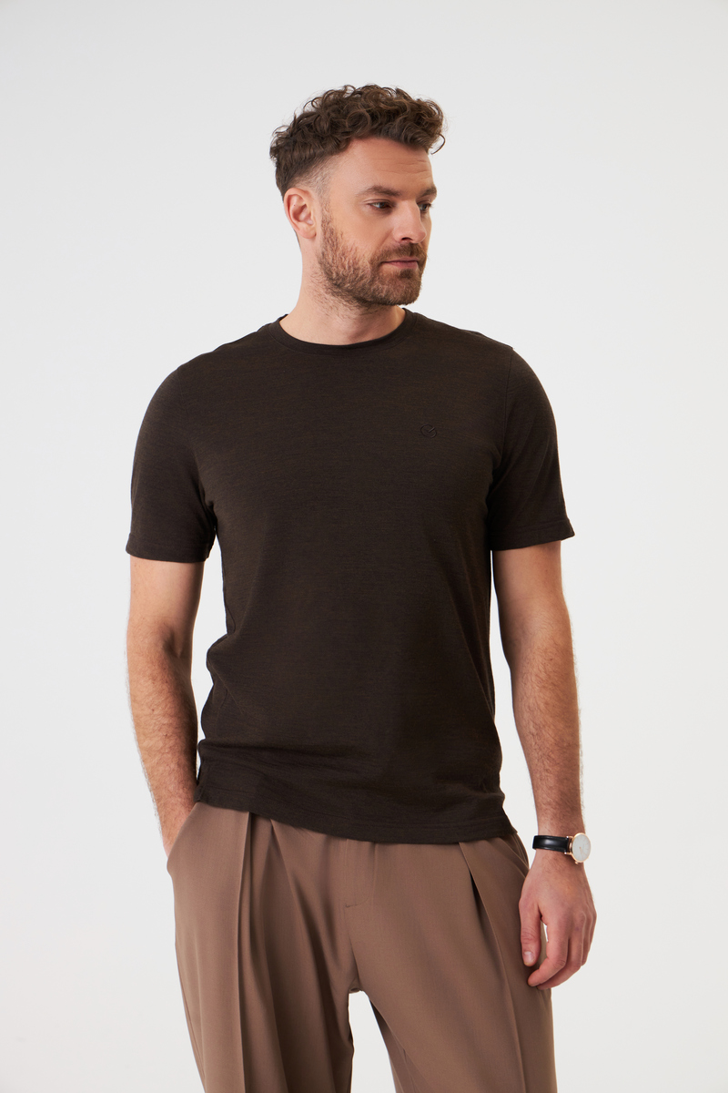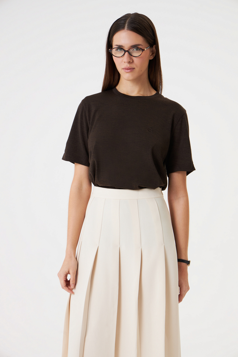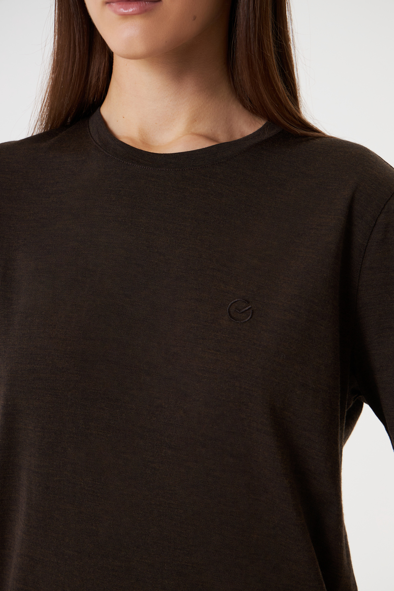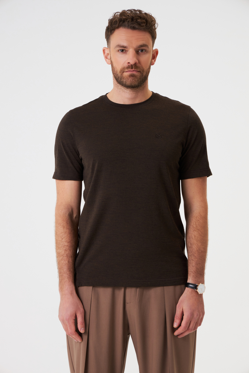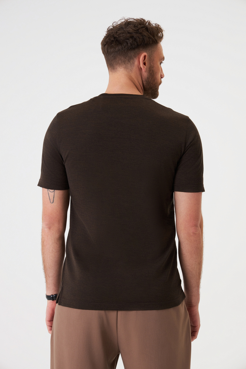 Футболка Merino Wool СБЕР коричневого цвета – это сочетание инновационных технологий и натуральных материалов. Изготовлена из 100% шерсти мериноса (Botto Poala Merino wool super 120s), которая обладает невероятными свойствами терморегуляции, благодаря чему вы будете чувствовать себя комфортно в любую погоду. Прямой крой с усилением спины разработан для максимальной свободы движений.