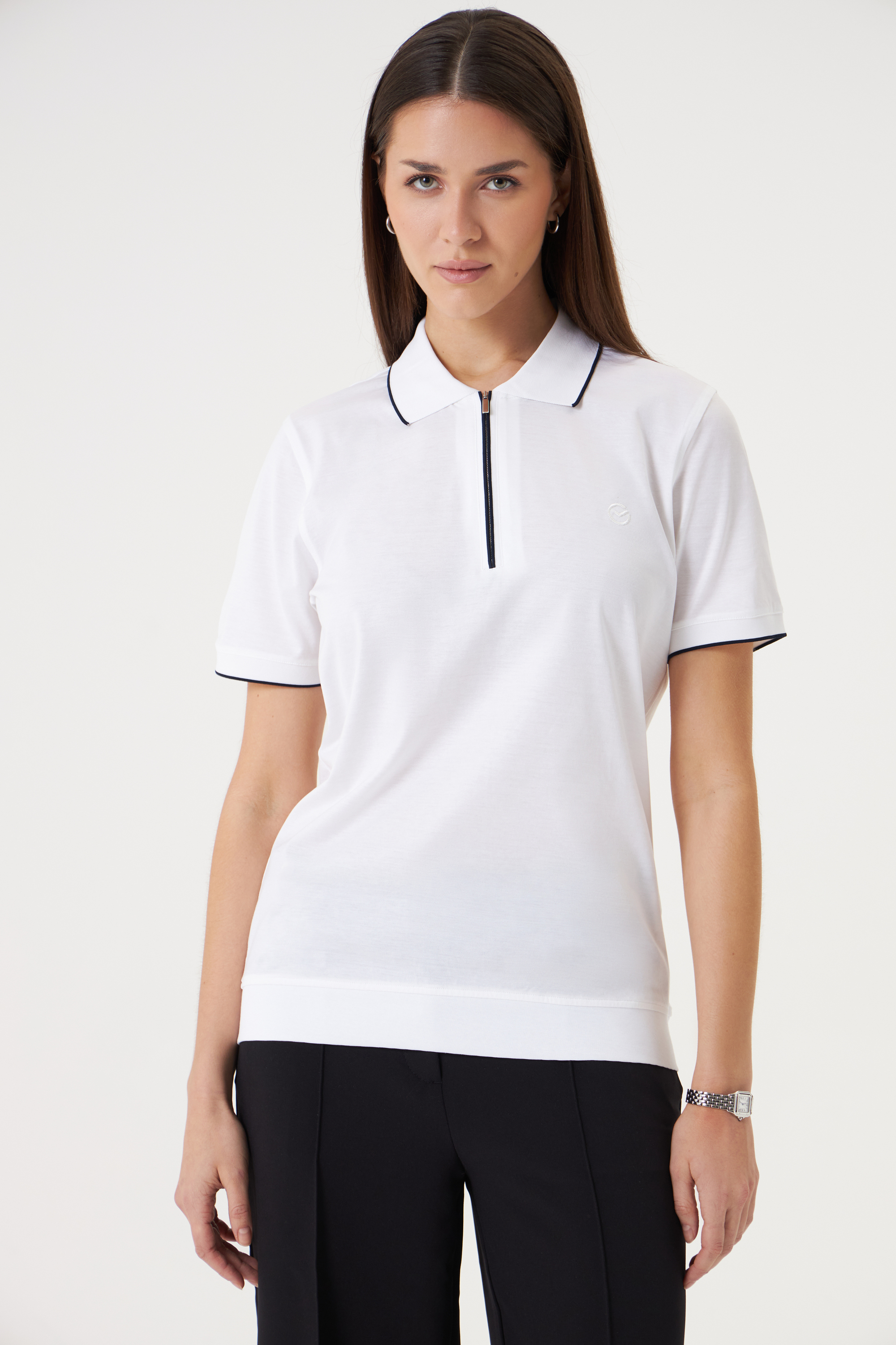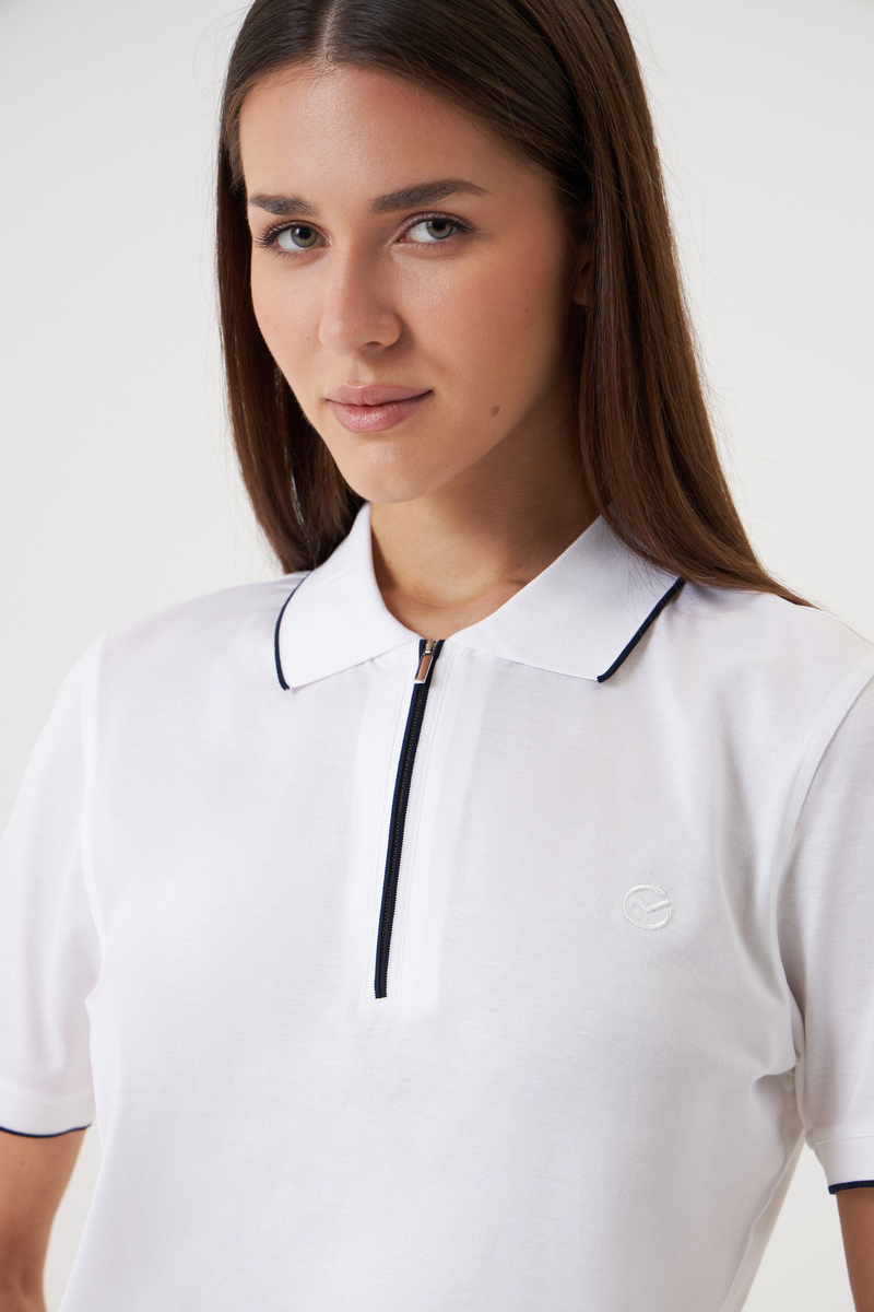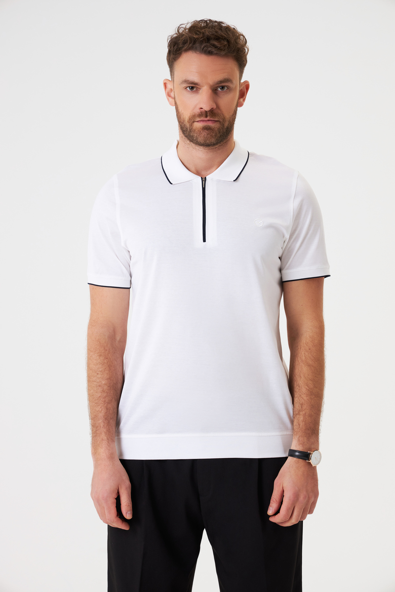 Подчеркните свой статус с жаккардовой футболкой-поло на молнии СБЕР в белом цвете. Этот эксклюзивный предмет гардероба изготовлен из 100% хлопка SUPIMA высшего качества, произведенного из итальянских нитей с двойным плетением. Эта ткань славится своей мягкостью, прочностью и безупречным внешним видом. Деликатная вышивка 20 мм - элегантное завершение образа.