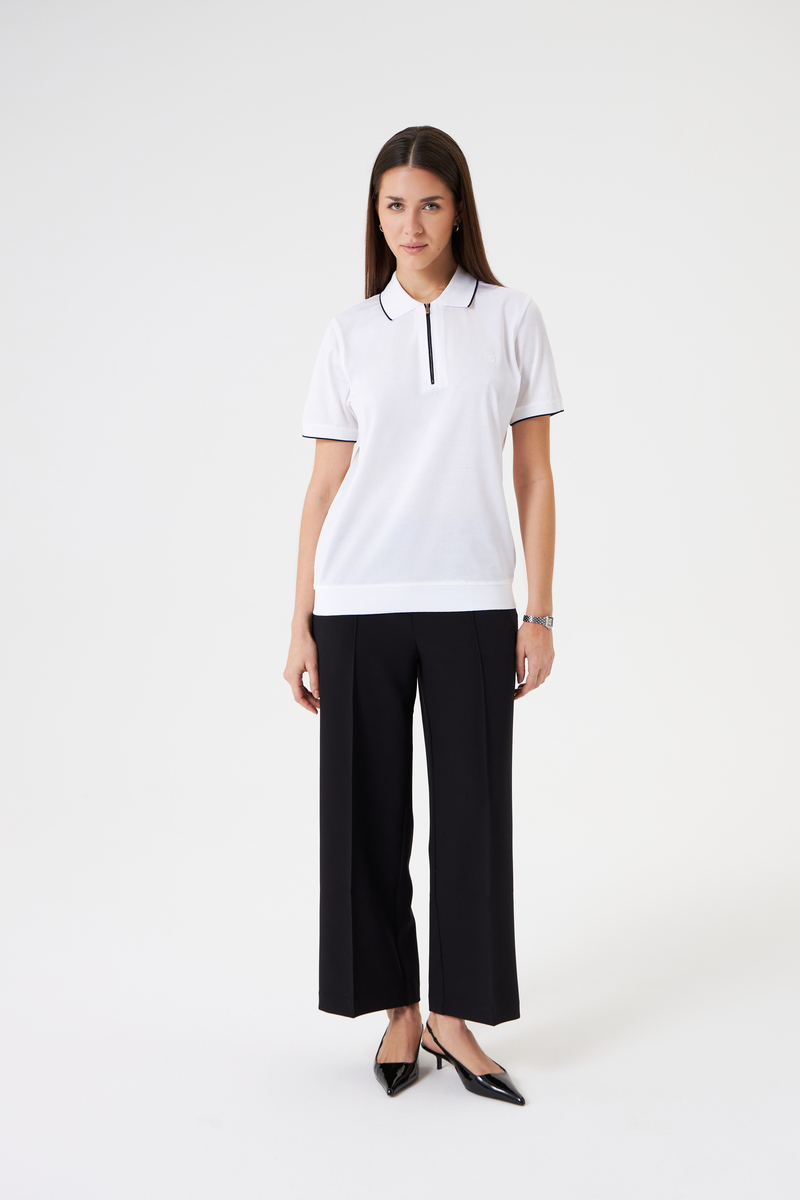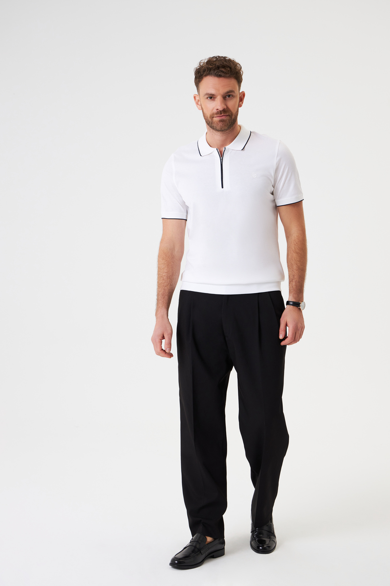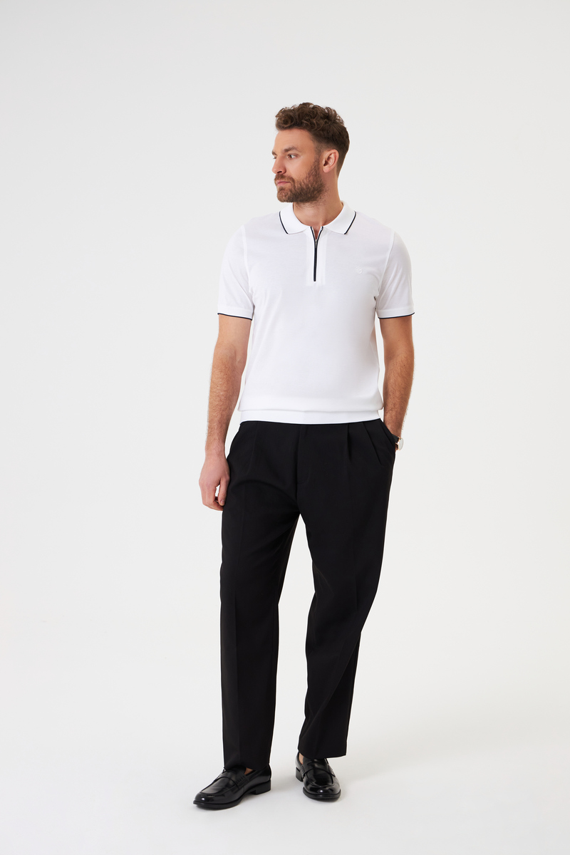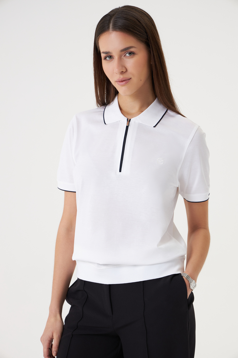 Подчеркните свой статус с жаккардовой футболкой-поло на молнии СБЕР в белом цвете. Этот эксклюзивный предмет гардероба изготовлен из 100% хлопка SUPIMA высшего качества, произведенного из итальянских нитей с двойным плетением. Эта ткань славится своей мягкостью, прочностью и безупречным внешним видом. Деликатная вышивка 20 мм - элегантное завершение образа.
