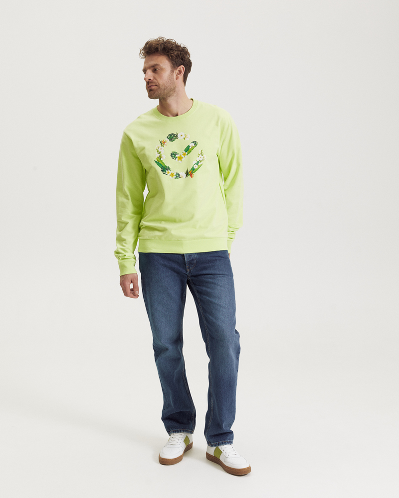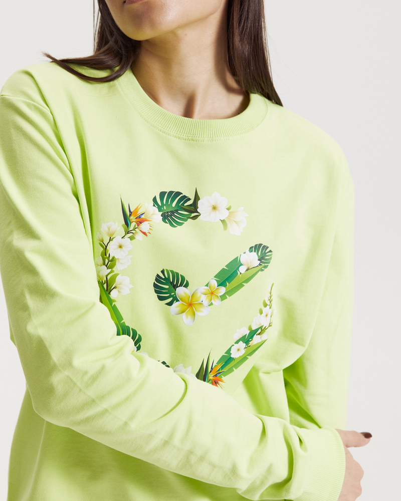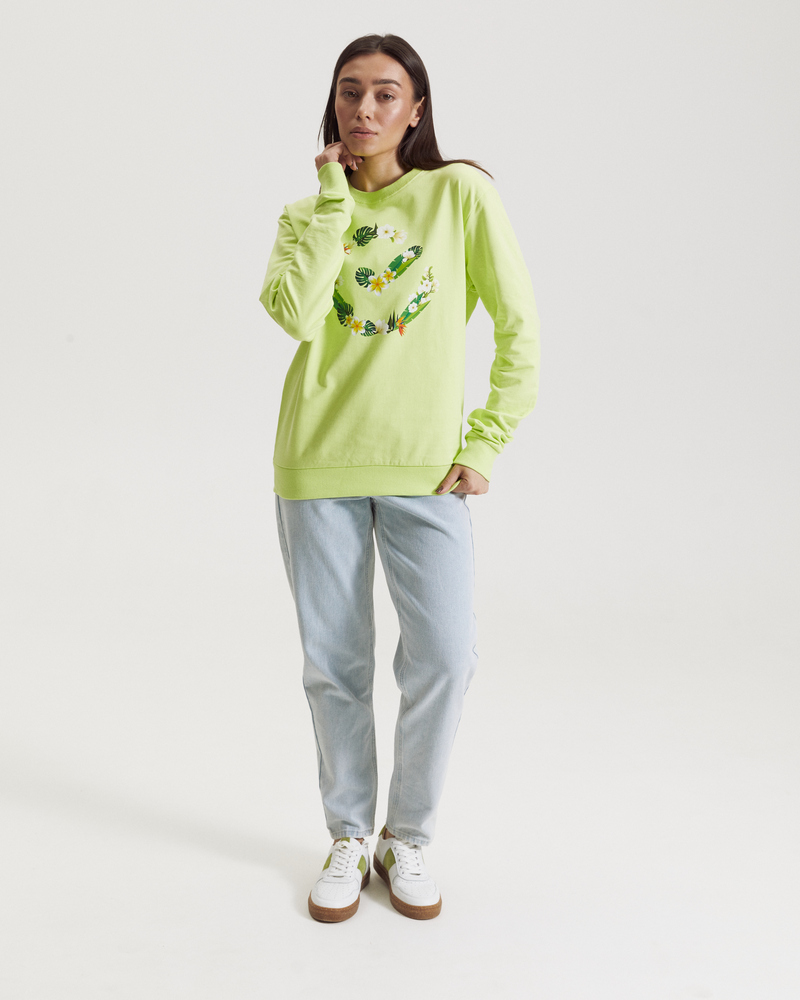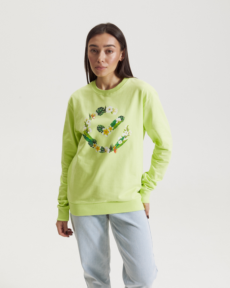 Свитшот СБЕР Весна: подарите себе легкость и комфорт в новом сезоне! Изготовлен из натурального 100% хлопка (260 г/м²) — мягкий и приятный к телу. Футер без начеса идеально подходит для теплой весенней погоды. Яркий и современный DTF-принт размером 237 х 232 мм добавит красок и позитива в ваш образ.