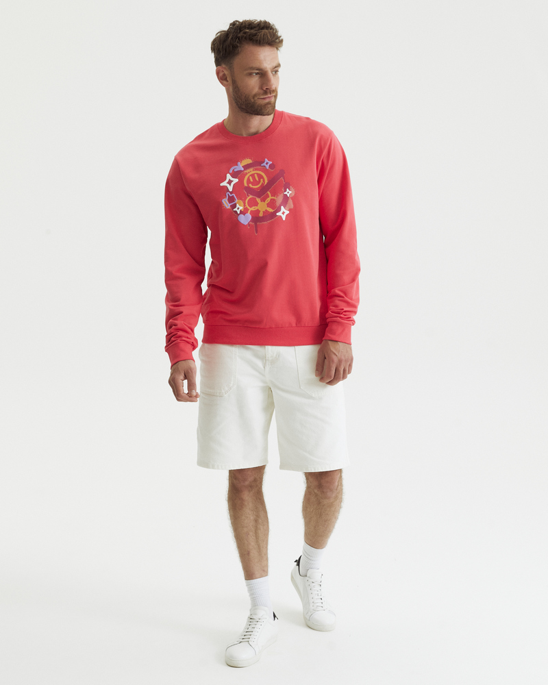 Свобода, комфорт и стиль – всё это свитшот СБЕР Граффити. Изготовлен из 100% дышащего хлопка (260 г/м²), обеспечивающего приятное ощущение на коже. Футер без начёса гарантирует легкость и удобство в движении. Яркий принт в стиле граффити, нанесённый шелкографией (230 x 250 мм), делает ваш образ запоминающимся и актуальным. Идеальный выбор для создания стильного образа на каждый день.