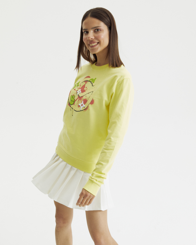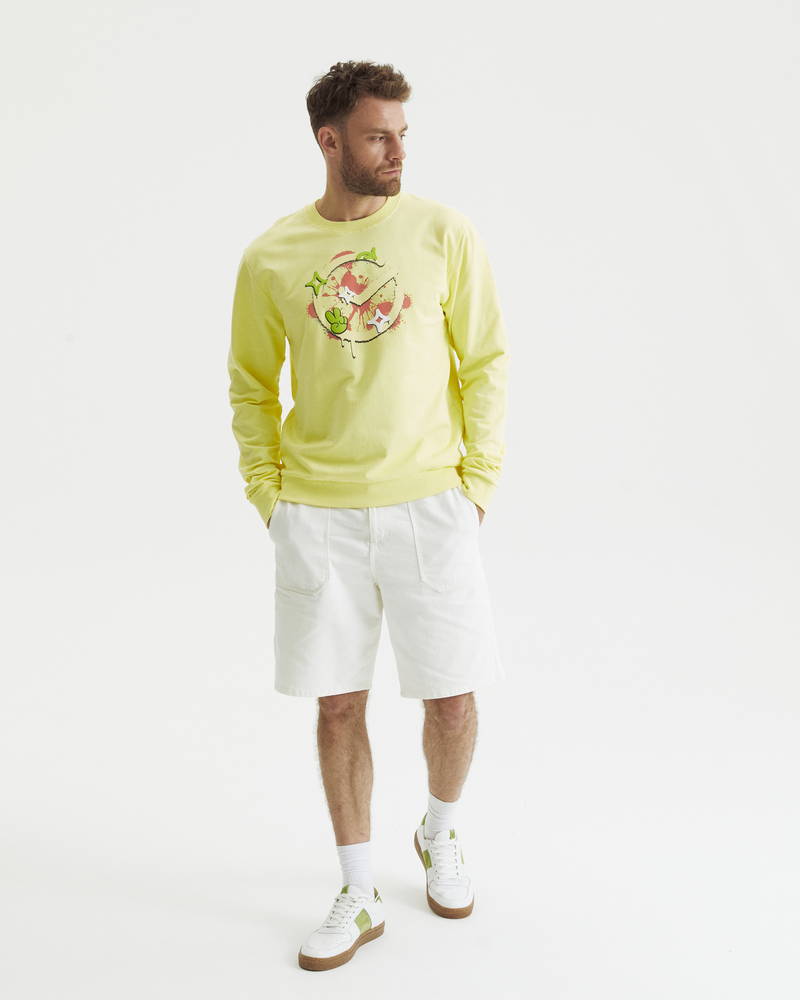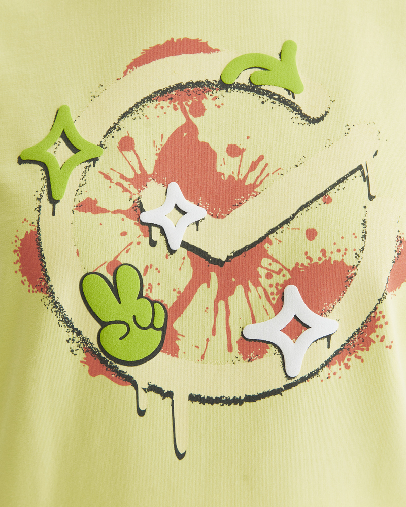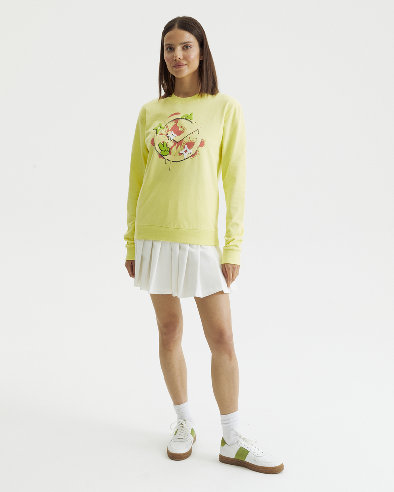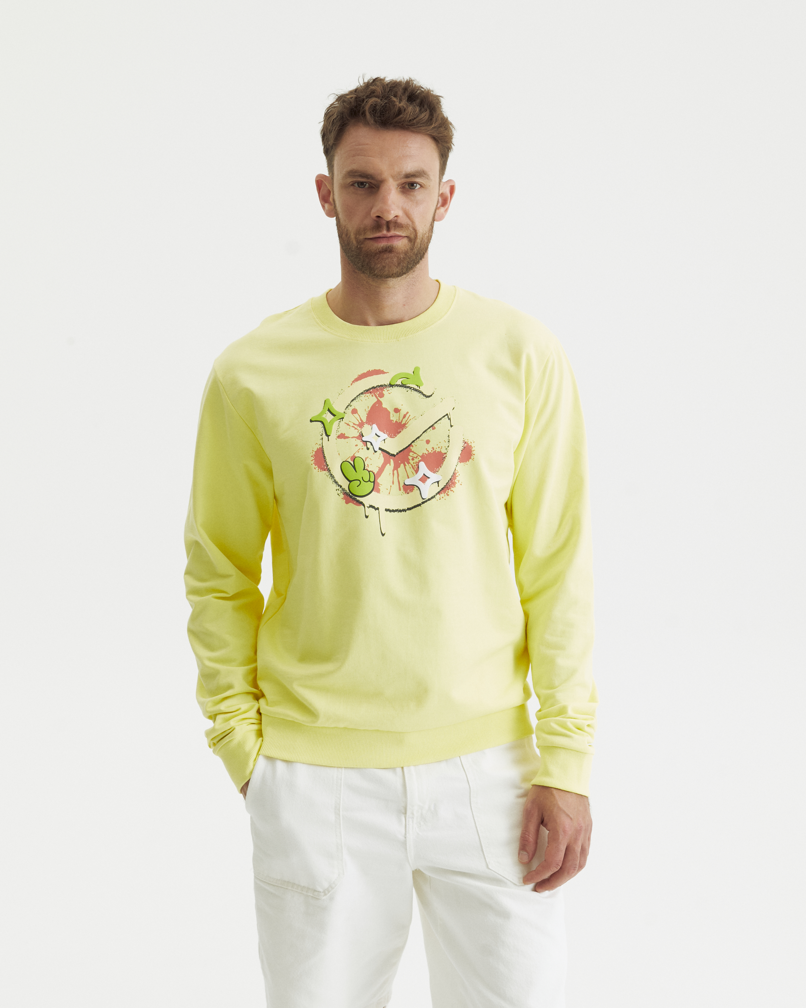 Свобода, комфорт и стиль – всё это свитшот СБЕР Граффити. Изготовлен из 100% дышащего хлопка (260 г/м²), обеспечивающего приятное ощущение на коже. Футер без начёса гарантирует легкость и удобство в движении. Яркий принт в стиле граффити, нанесённый шелкографией (230 x 250 мм), делает ваш образ запоминающимся и актуальным. Идеальный выбор для создания стильного образа на каждый день.