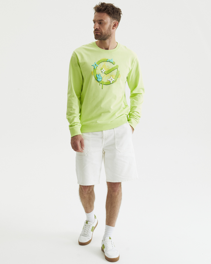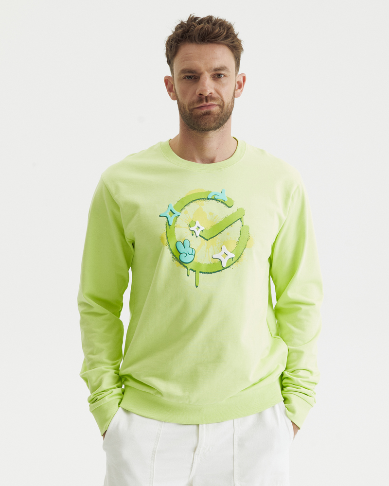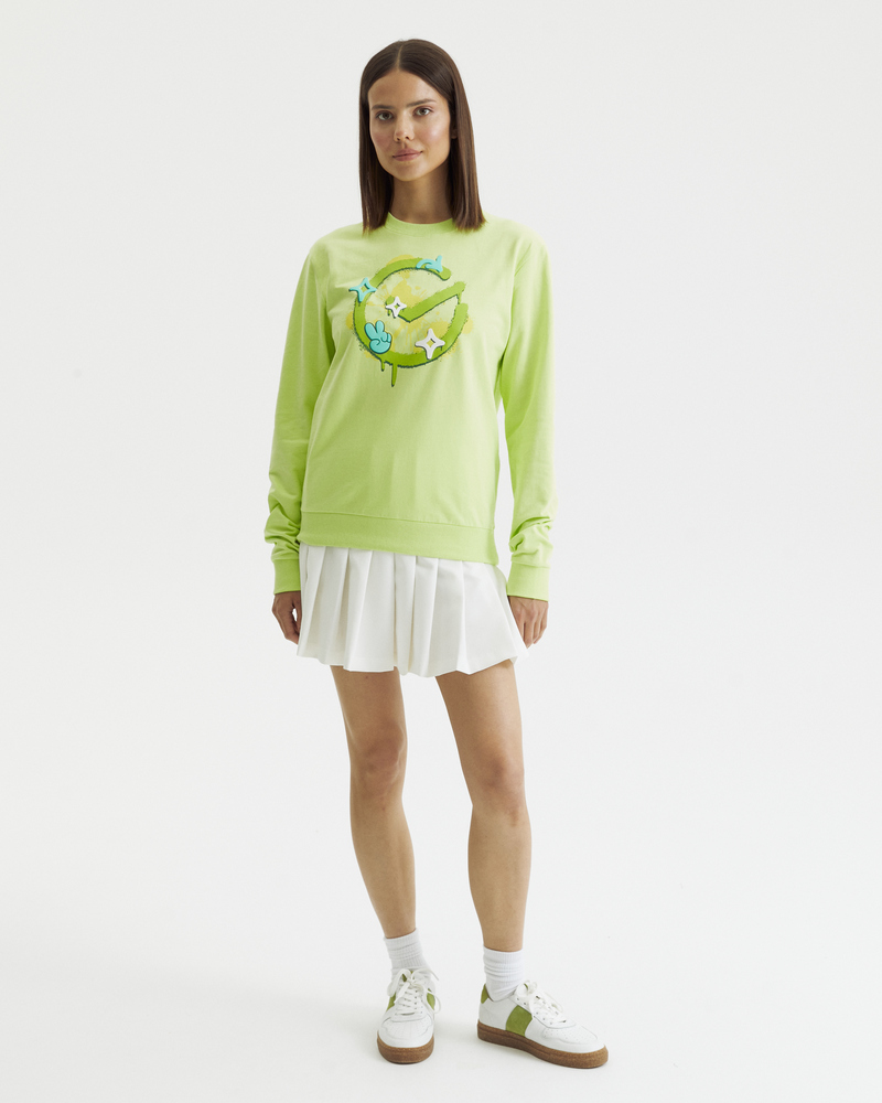Свобода, комфорт и стиль – всё это свитшот СБЕР Граффити. Изготовлен из 100% дышащего хлопка (260 г/м²), обеспечивающего приятное ощущение на коже. Футер без начёса гарантирует легкость и удобство в движении. Яркий принт в стиле граффити, нанесённый шелкографией (230 x 250 мм), делает ваш образ запоминающимся и актуальным. Идеальный выбор для создания стильного образа на каждый день.