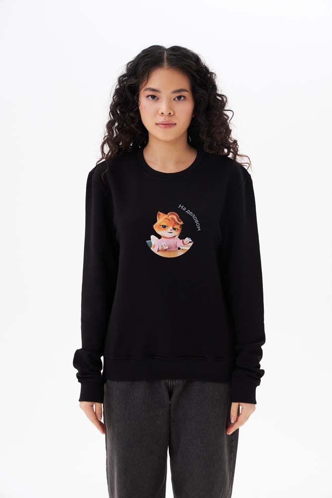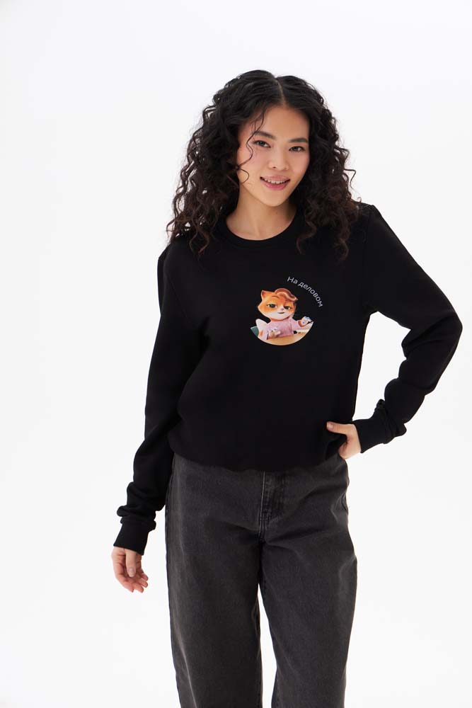 Свитшот На деловом – часть вашего успешного образа. Комфорт, стиль и уверенность – всё в одном. Лёгкий и приятный к телу, он не будет отвлекать вас от важных дел. Качественный материал, продуманная обработка горловины и силиконовая лента в плече гарантируют безупречную посадку.