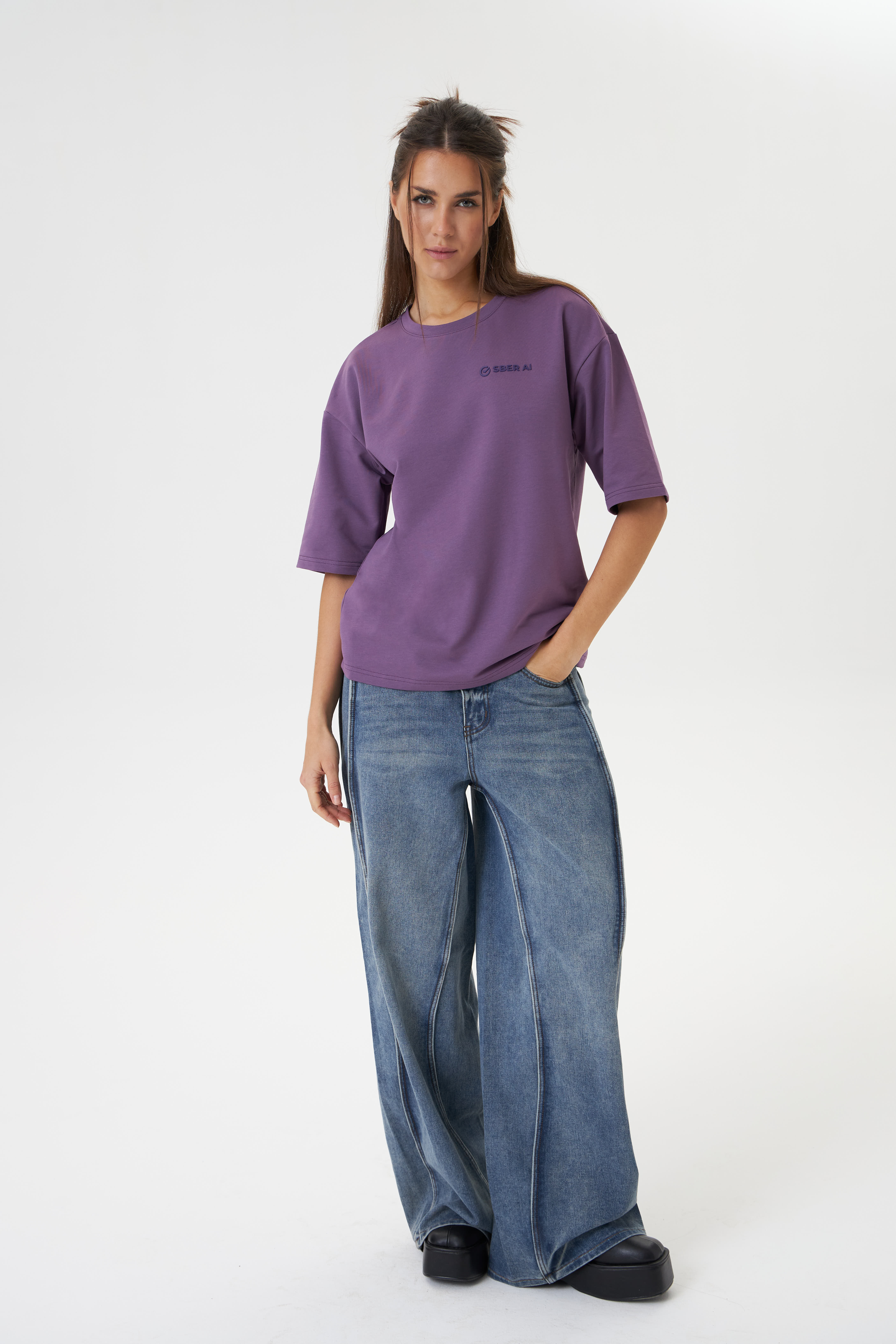 Оцените идеальное сочетание комфорта и минималистичного дизайна в нашей футболке оверсайз SberAI, выполненной в нежном цвете глицинии. Мягкий футер двухнитка обеспечивает приятные ощущения на коже, а лаконичное брендирование добавляет образу элегантности. Эта футболка станет незаменимой частью вашего повседневного гардероба.