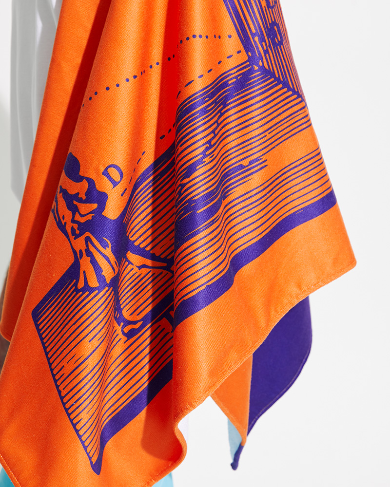Полотенце в летнем оранжевом цвете украшает схема принципа построения изображения в камере-обскуре - простейшего вида устройства, позволяющего получать оптическое изображение объектов.