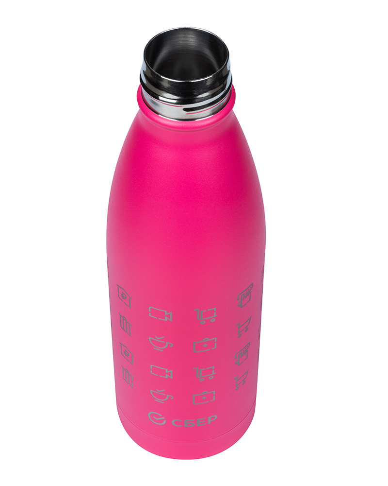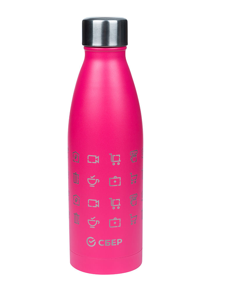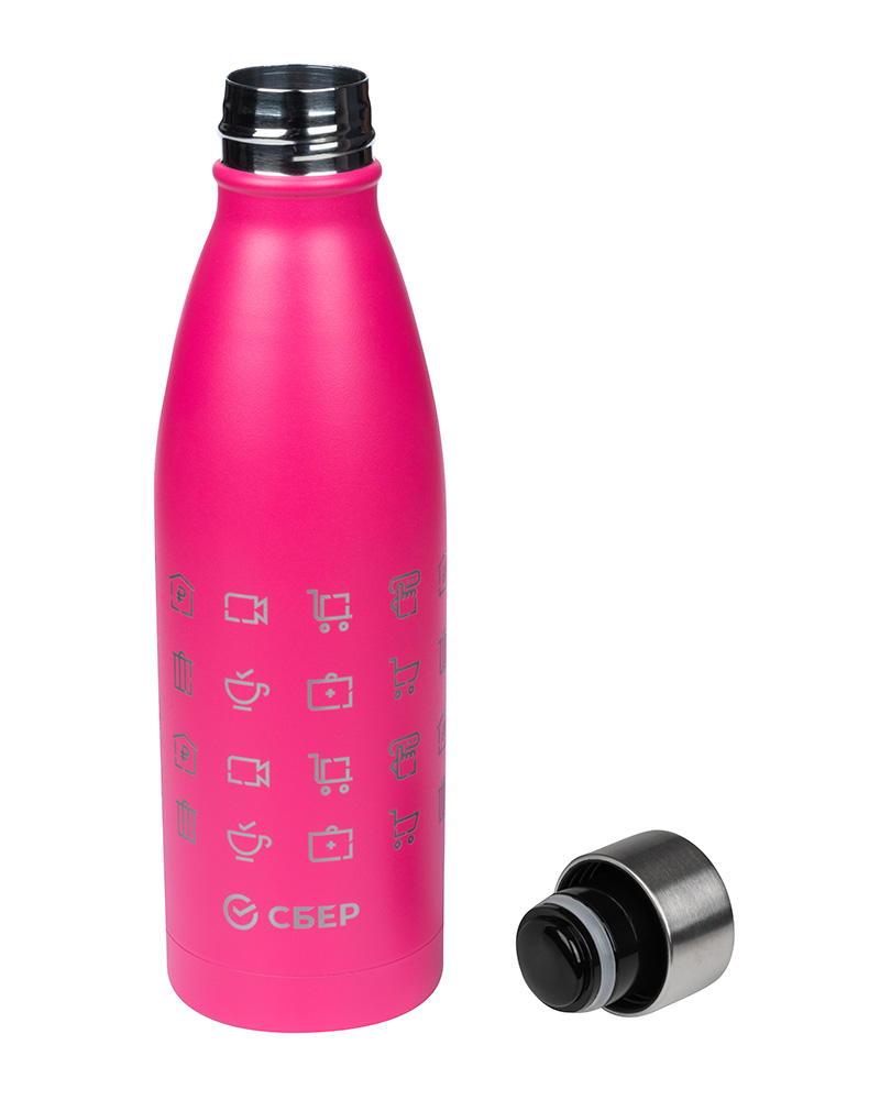 Термобутылка Fresco «Экосистема» от Portobello × Сбер объёмом 500 мл изготовлена из нержавеющей стали премиального качества. Благодаря плотно закрывающейся крышке температура вашего напитка сохранится на несколько часов, а сам напиток точно не прольётся в сумке или рюкзаке.
