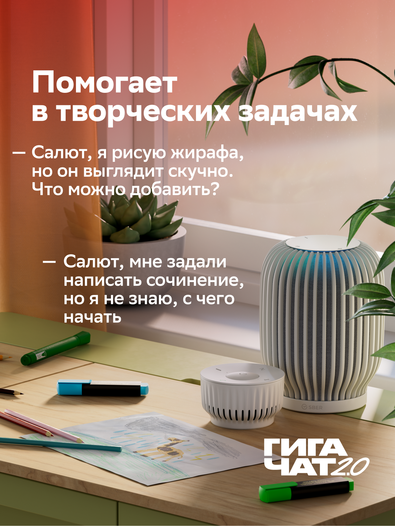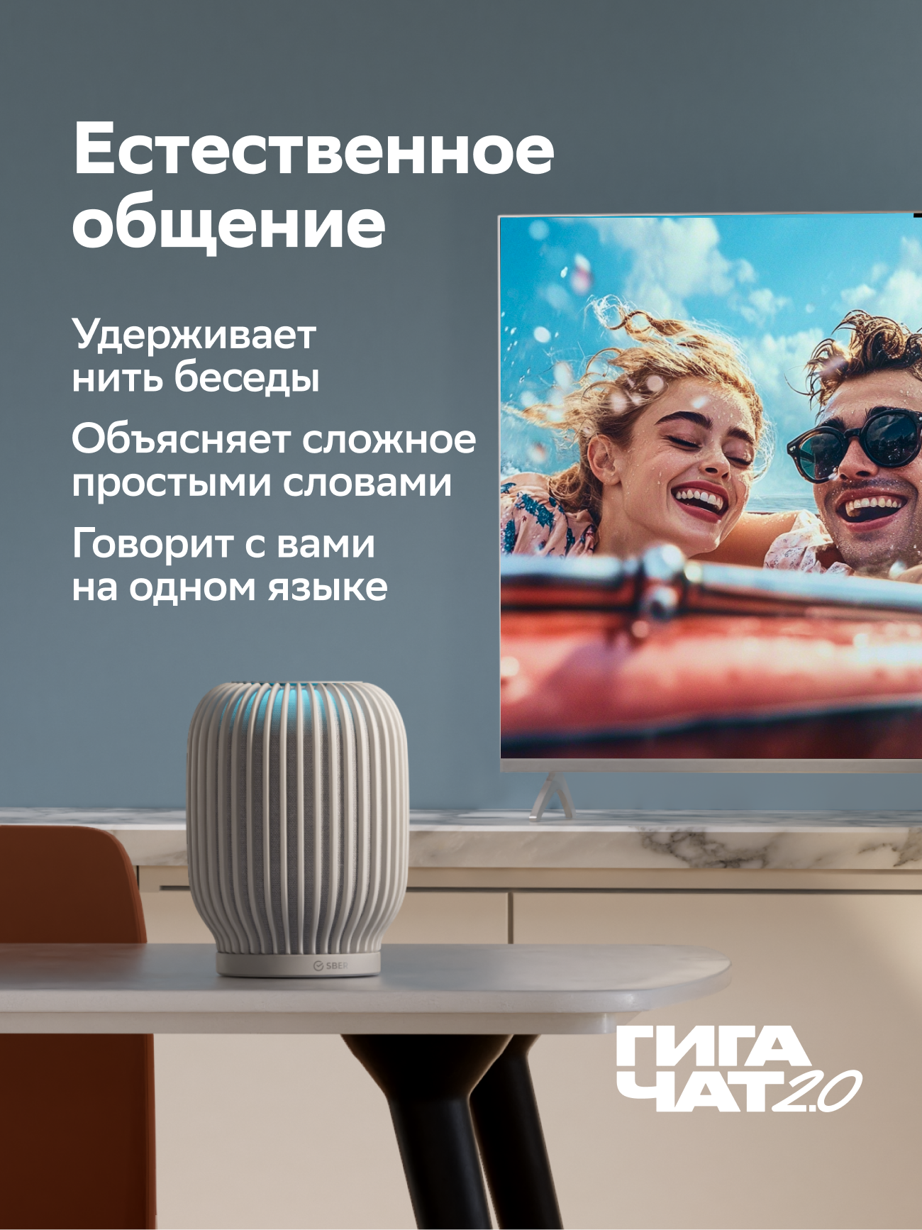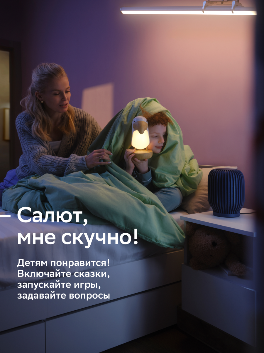 Внутри SberBoom — виртуальные ассистенты Салют. Попросите, и они найдут песню, расскажут о погоде, будут управлять устройствами умного дома или помогут занять детей.