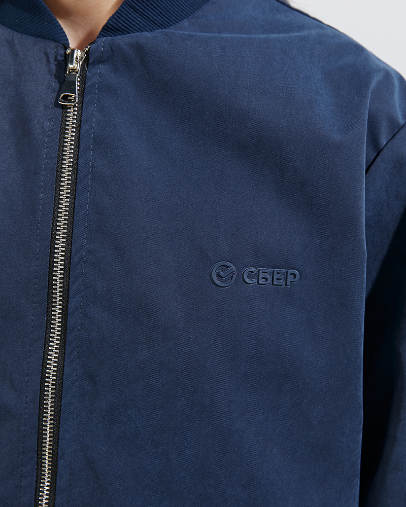 Бомбер из коллекции Sber Premium бережно сшит из высококачественных материалов, оснащён надёжной молнией и украшен логотипом СБЕР.