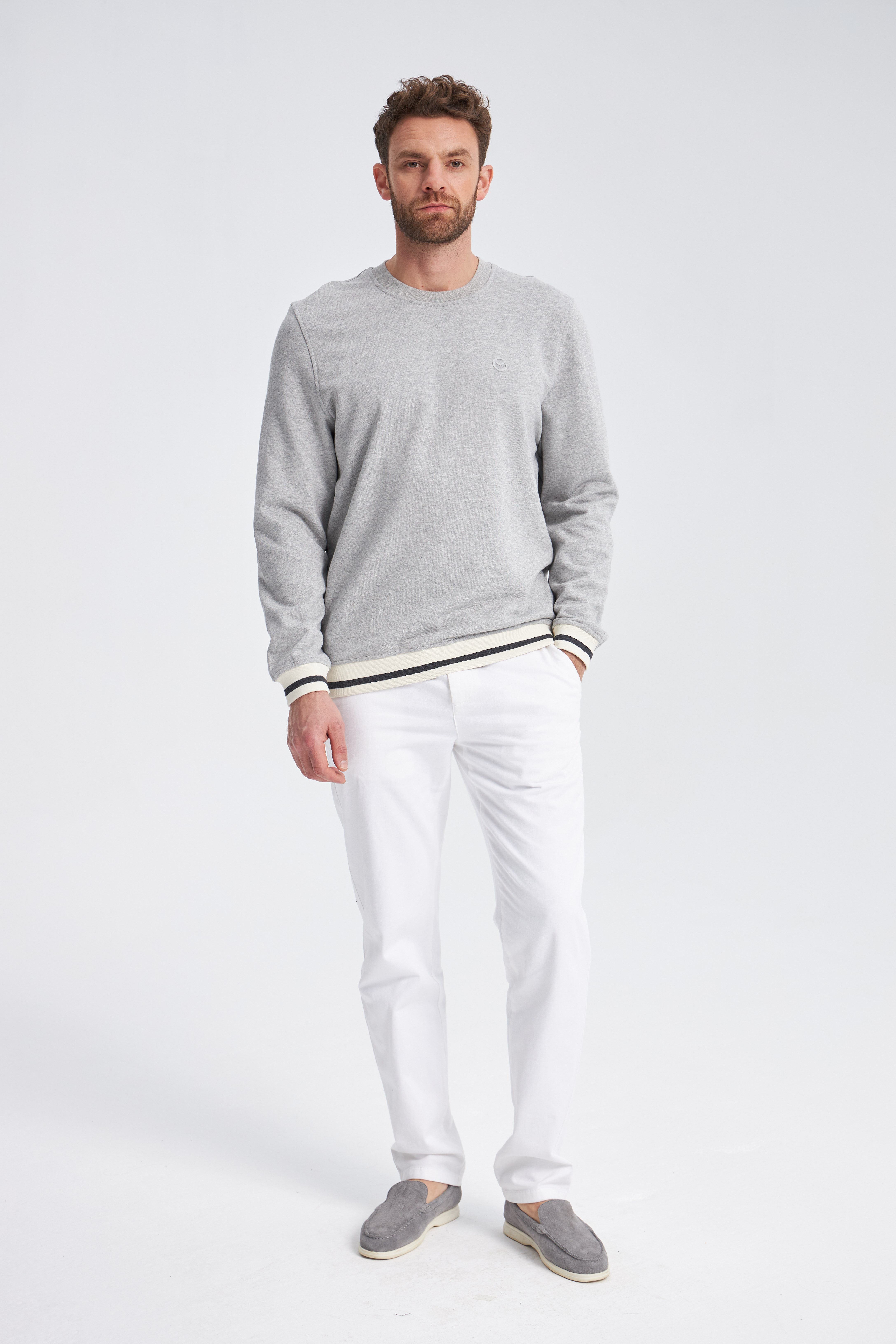 Свитшот с подвязами СБЕР – стильный комфорт с акцентом на детали. Этот светло-серый свитшот идеально сочетает в себе удобство и оригинальный дизайн. Выполненный из премиального футера 3-х ниточного с петлей из меланжевой итальянской нити, он приятен на ощупь и отлично сохраняет форму.