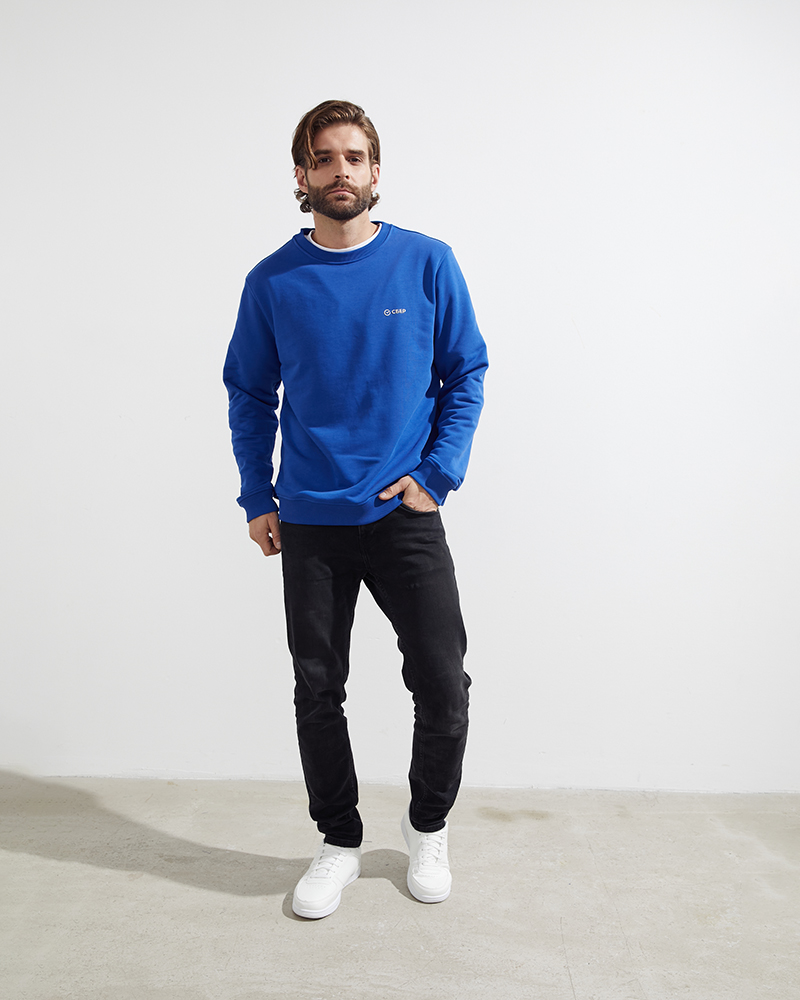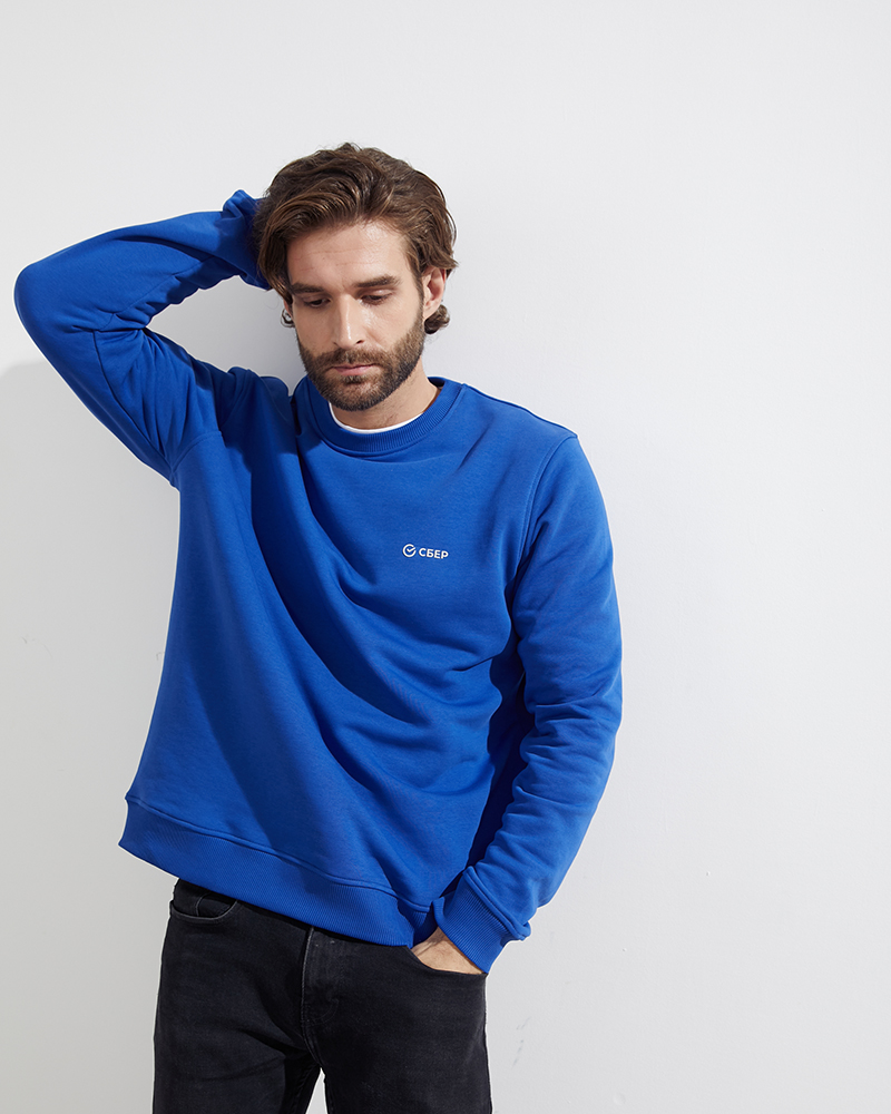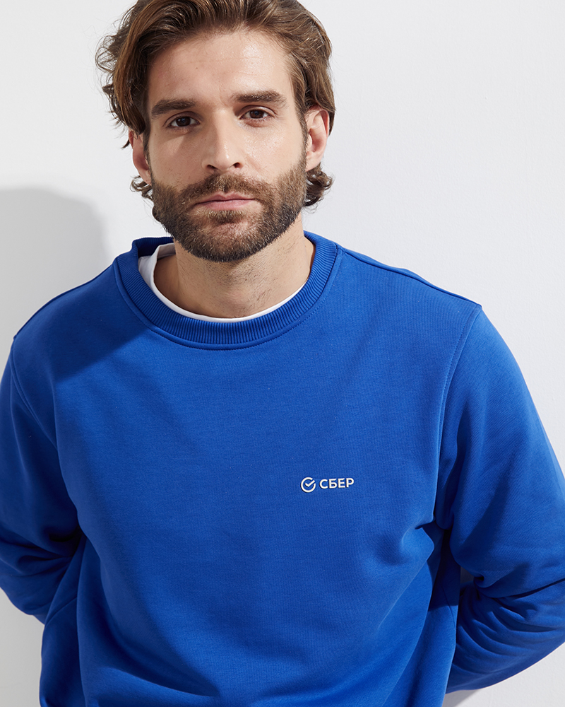 Уникальное сочетание практичности, универсальности и традиционного элемента экосистемы СБЕР в классическом свитшоте коллекции SBER PREMIUM.