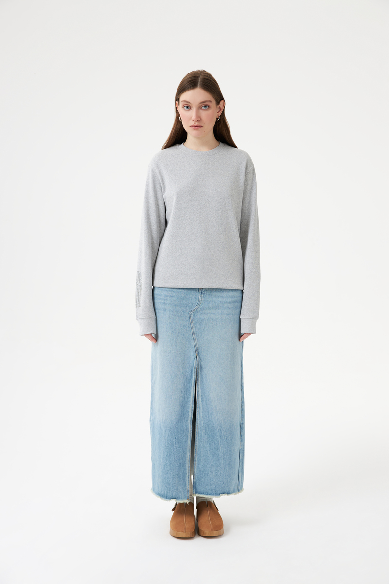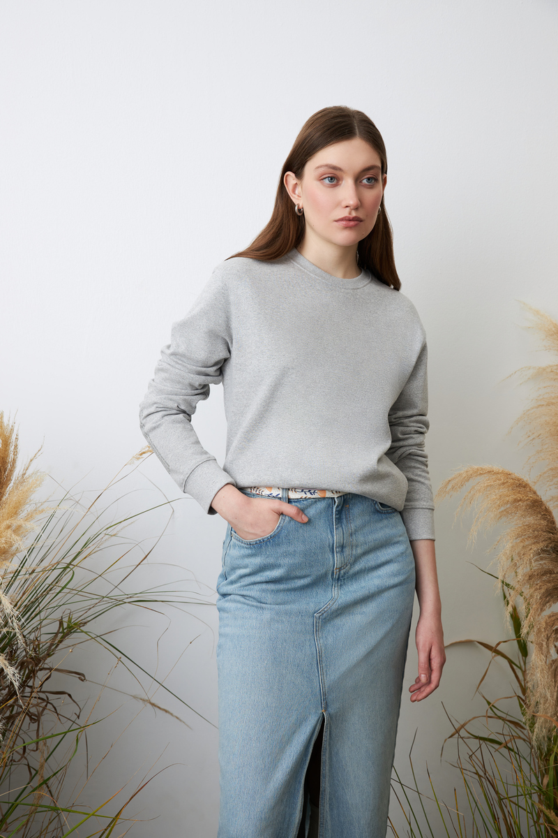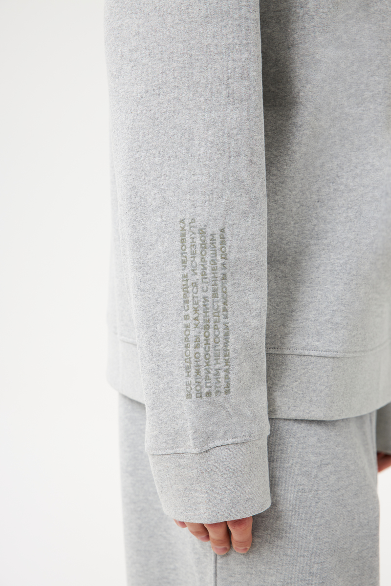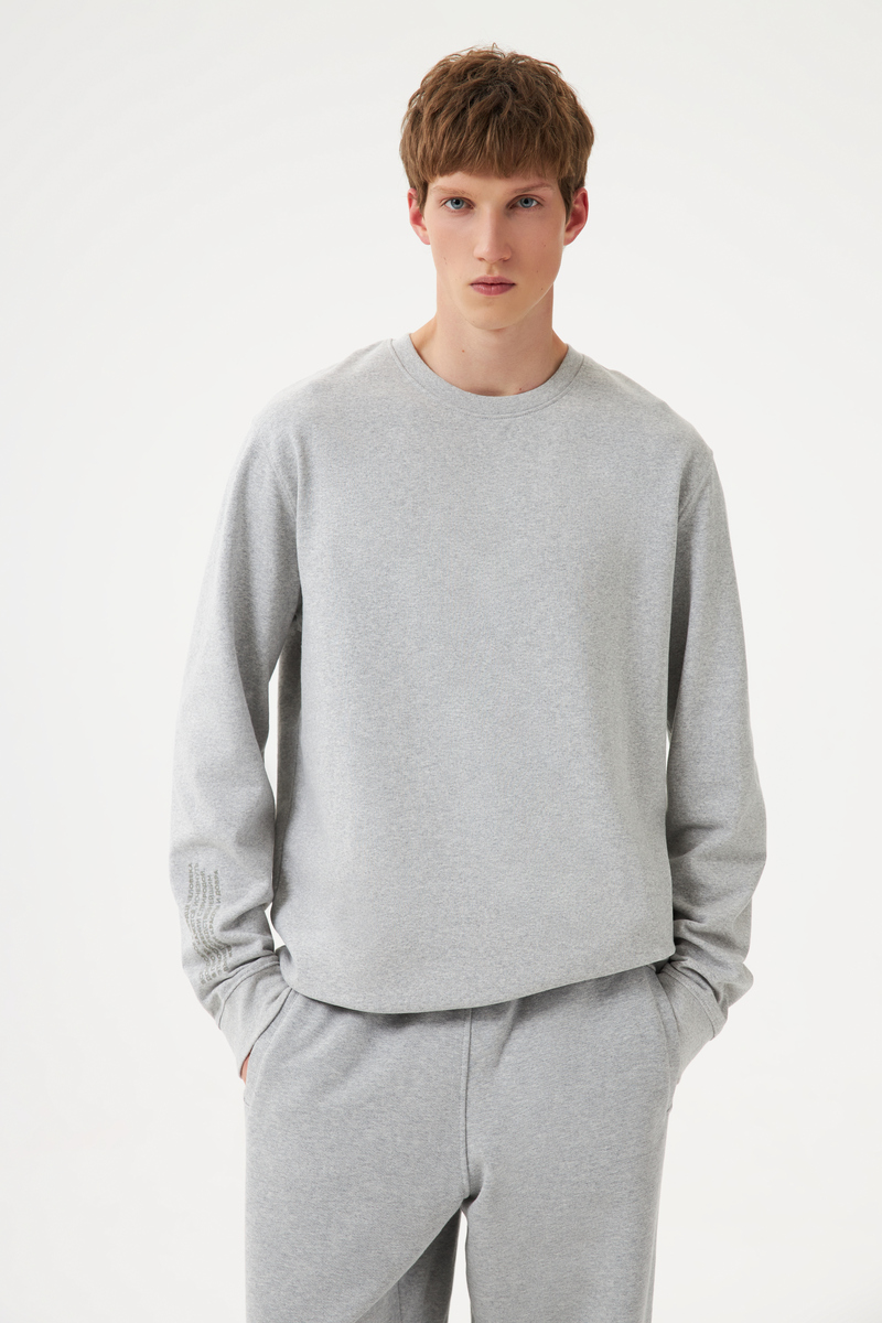 Свитшот из новой коллекции ESG на 30% состоит из переработанного хлопка и на 70% из органического.