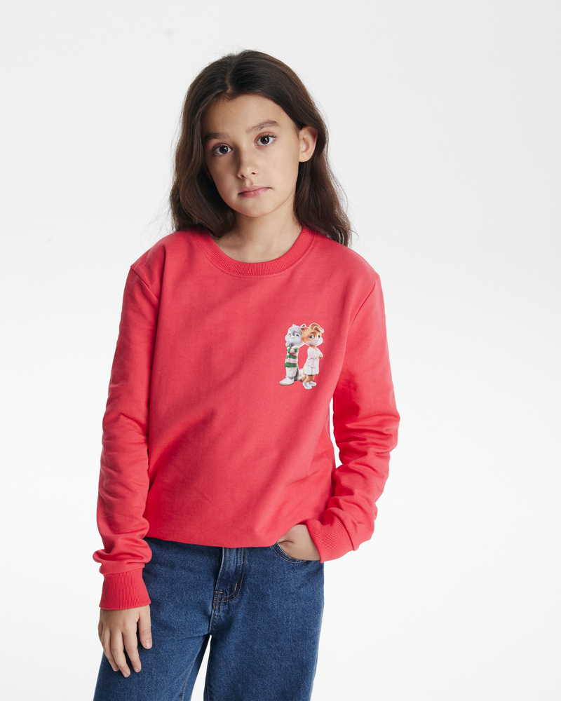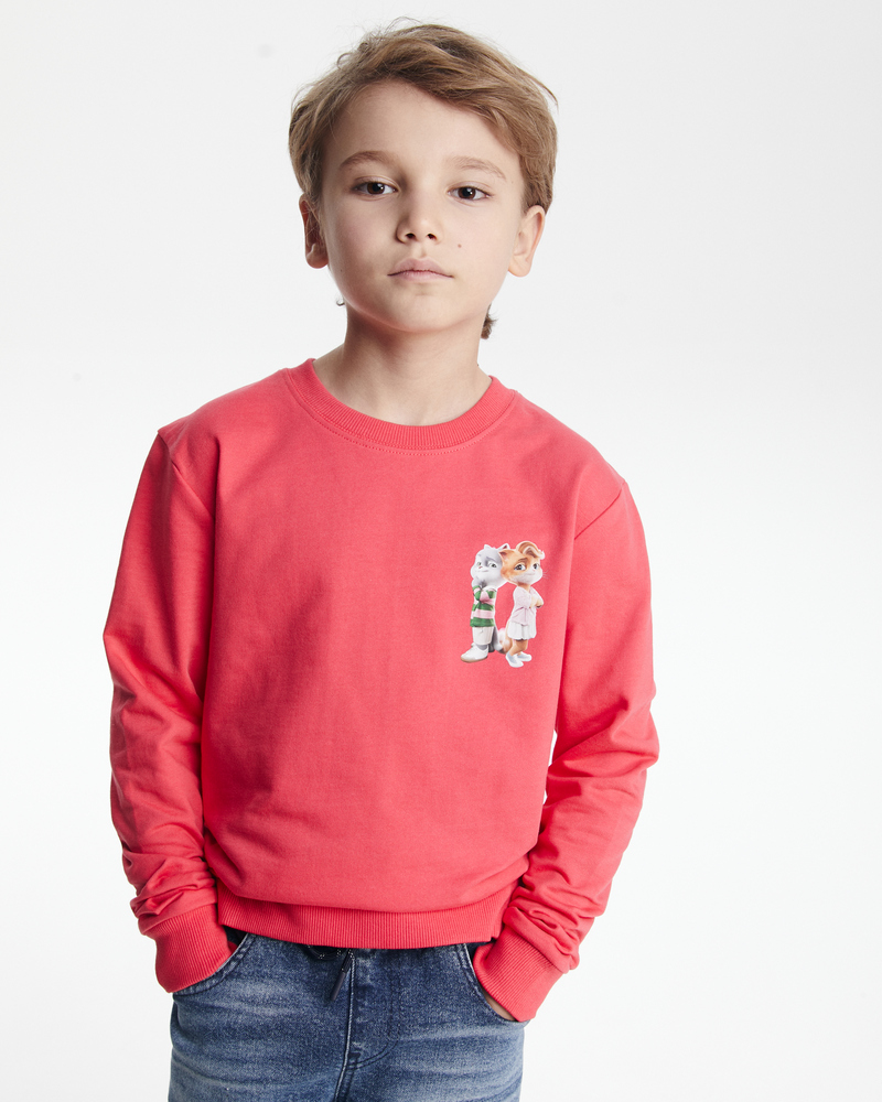 Уютный и стильный свитшот с СберКотом и Кусей для вашего ребенка! Выполнен из натурального и дышащего 100% хлопка (футер без начеса, 260 г/м2), что обеспечивает максимальный комфорт в течение всего дня. Яркий и качественный DTF-принт на груди (размером 60x90 мм) делает этот свитшот особенным.